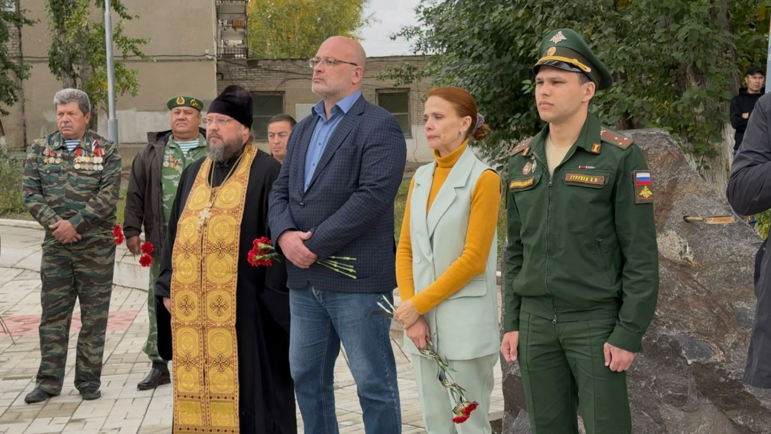 24 сентября 2025 года, по благословению епископа Нерчинского и Краснокаменского Макария, секретарь Нерчинской епархии игумен Симеон (Зимняков) принял участие в торжественном мероприятии, посвящённом памяти забайкальцев, погибших при исполнении воинского и служебного долга. Церемония состоялась в Краснокаменске на Площади Героев. В этот памятный день на мемориальной аллее воинской славы прошло поимённое увековечивание военнослужащих и добровольцев, погибших в зоне Специальной военной операции. Среди почётных гостей были представители власти и общественных организаций: врио главы муниципального района «Город Краснокаменск и Краснокаменский район» Наталья Щербакова, первый заместитель генерального директора ПАО «ППГХО» по развитию Олег Проскуряков, представитель ассоциации участников СВО на территории г. Краснокаменска и Краснокаменского района старший лейтенант запаса Константин Гурулев. Представители Общественной организации «Боевое братство», ученики школ и студенты, юнармейцы и кадеты, участники военно-патриотической игры «Зарница», пришли, чтобы отдать дань уважения павшим воинам. В мероприятии приняли участие воины Специальной военной операции, а также родные и близких погибших – матери, жёны и дети, тех кто погиб на СВО. Игумен Симеон обратился к собравшимся с речью, напомнив о жертвенности и мужестве защитников Отечества. Он обратил внимание на подвиги и на героизм тех, кто стоял на страже, кто нес на своих плечах бремя ответственности за Родину. Он призвал не забывать имена героев, поминать их не только в официальные дни памяти, но и в тишине сердца, в каждодневных молитвах. Он напомнил, что память – это живой мост, соединяющий поколения, передающий ценности и опыт. Забыть – значит предать. Именно поэтому, по его словам, так важно поддерживать памятники, сохранять семейные архивы, рассказывать истории о героях своим детям и внукам, чтобы живая память о жертвенности защитников Отечества жила вечно. ©Нерчинская епархия