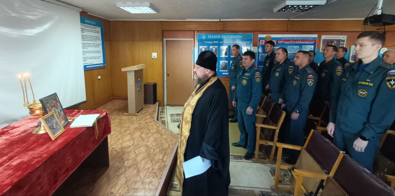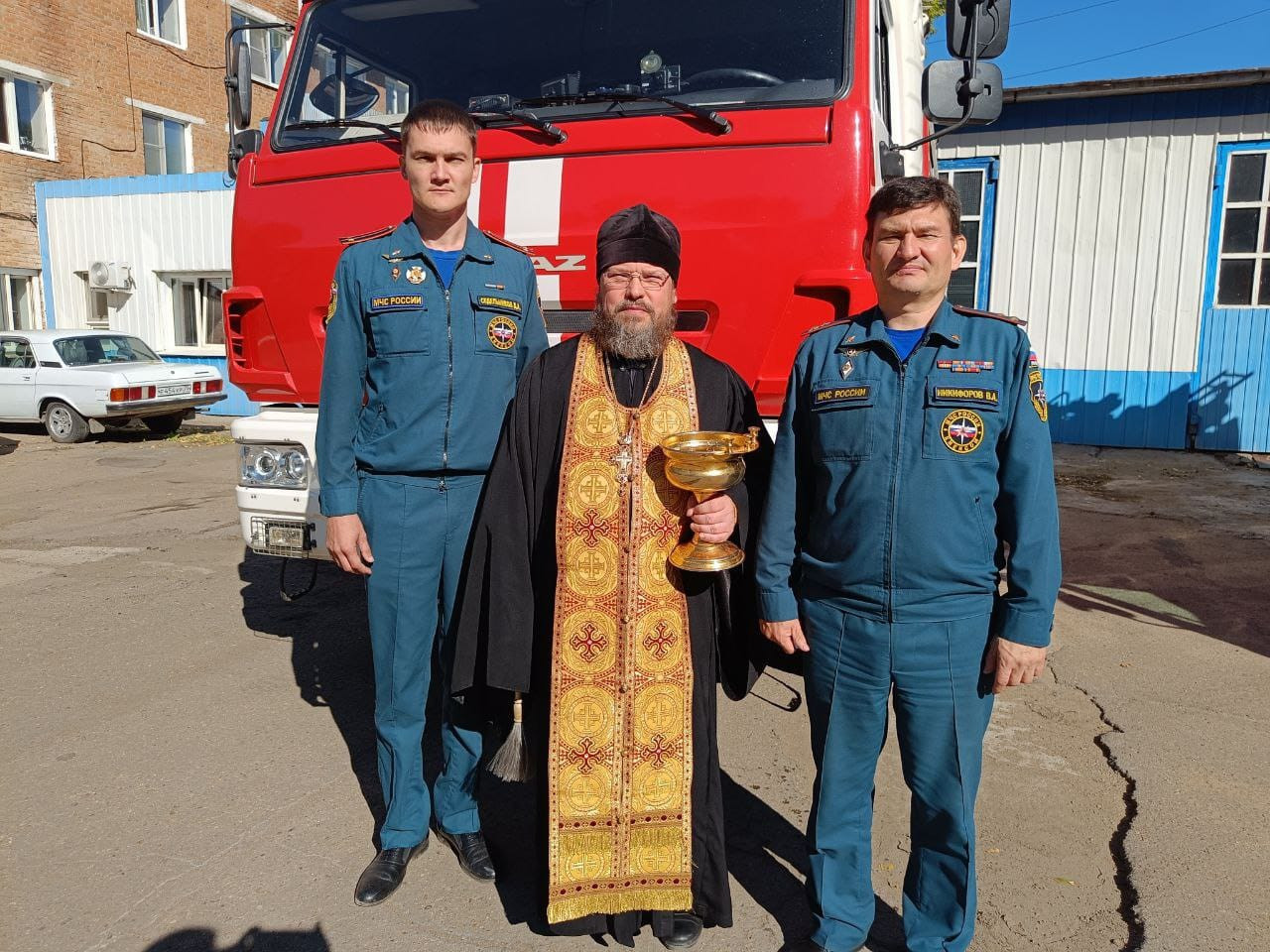 Священнослужитель поздравил спасателей в Краснокаменске с праздником иконы Божией Матери «Неопалимая Купина»