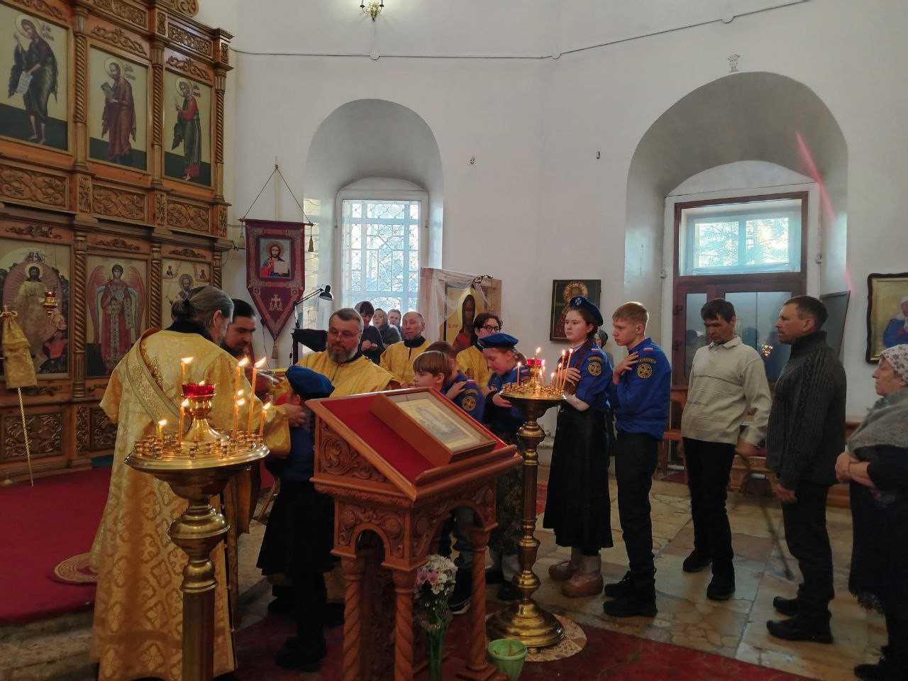 4 января 2026 года, в Неделю 30-я по Пятидесятнице, перед Рождеством Христовым, святых отец, день памяти великомученицы Анастасии Узорешительницы (ок. 304 г.), епископ Нерчинский и Краснокаменский Макарий совершил Божественную литургию в кафедральном соборе Воскресения Христова в Нерчинске. Его Преосвященству сослужил ключарь кафедрального собора Воскресения Христова г. Нерчинска иерей Роман Пичуев. Диаконский чин: диакон Андрей Окладников, диакон Игорь Радьков. За богослужением молились дети отряда Братства православных следопытов в честь цесаревича Алексия Романова пгт. Атамановка (Читинская епархия). Богослужебные песнопения исполнил хор Воскресенского кафедрального собора г. Нерчинска. По благословению Святейшего Патриарха Московского и всея Руси Кирилла на сугубой ектении были вознесены особые прошения и молитва о Святой Руси. По окончании Литургии верующие поздравили епископа Макария с 24-летием со дня монашеского пострига. Владыка Макарий поздравил руководителя отряда Братства православных следопытов при храме Рождества Пресвятой Богородицы пгт. Атамановка Дмитриеву Анастасию Львовну с днем тезоименитства. На память все участники богослужения сфотографировались вместе с архипастырем. ©Нерчинская епархия