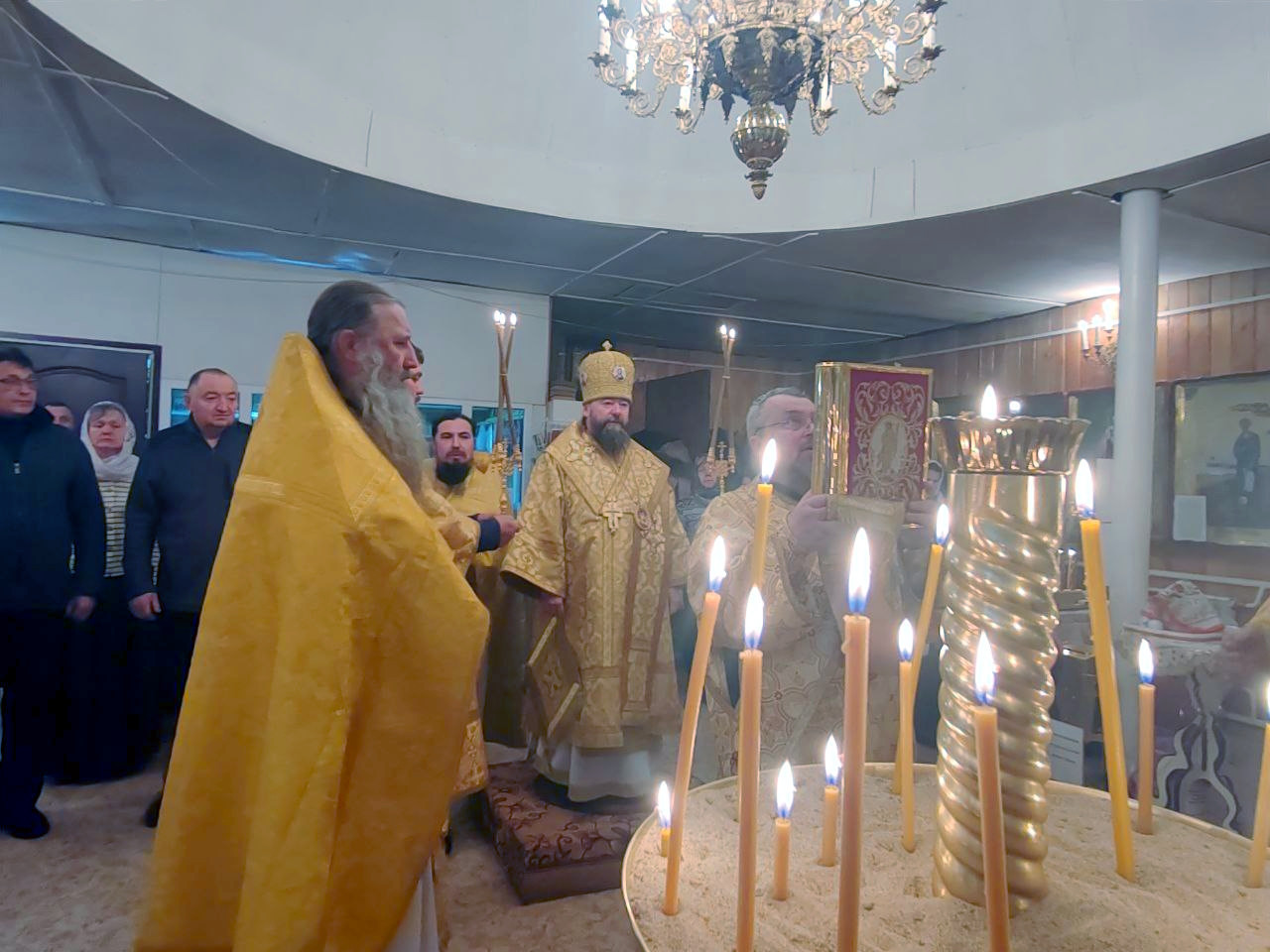 Епископ Макарий совершил Литургию в храме апостола Андрея Первозванного в поселке Новая Чара Каларского района.