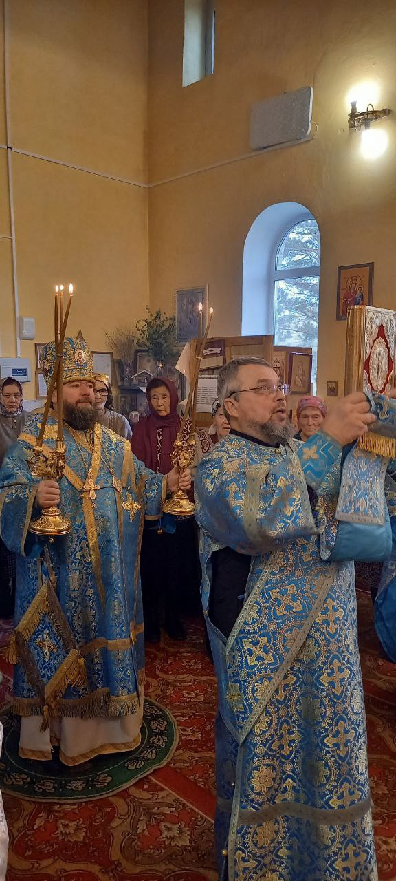 6 ноября 2025 года, в день празднования иконы Божией Матери «Всех скорбящих Радость», епископ Нерчинский и Краснокаменский Макарий совершил Божественную литургию в храме Воскресения Христова в селе Дульдурга Агинского Бурятского округа. Его Преосвященству сослужили: настоятель храма Воскресения Христова с. Дульдурга протоиерей Валерий Компаниец; ключарь кафедрального собора Воскресения Христова г. Нерчинска иерей Роман Пичуев. Диаконский чин: диакон Андрей Окладников, диакон Игорь Радьков. По благословению Святейшего Патриарха Московского и всея Руси Кирилла на сугубой ектении были вознесены особые прошения и молитва о Святой Руси. По окончании Литургии епископ Макарий обратился к прихожанам с архипастырским словом. Он напомнил о значении иконы «Всех скорбящих Радость», которая является утешением для всех, кто испытывает трудности и страдания. «Пресвятая Богородица всегда рядом с нами, готовая поддержать и помочь в самых тяжелых ситуациях. Важно обращаться к Божией Матери в молитвах, особенно в моменты скорби. Многие святые, обращаясь к Ней, находили утешение и поддержку. Праздник иконы «Всех скорбящих Радость» служит напоминанием о том, что даже в самые трудные времена для нас мы не одни. Богородица — наша Заступница, и Её любовь и забота о нас безграничны», — сказал владыка Макарий. ©Нерчинская епархия