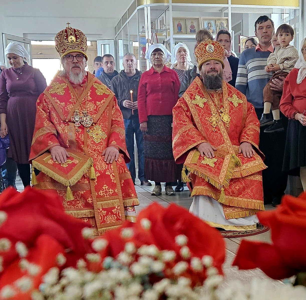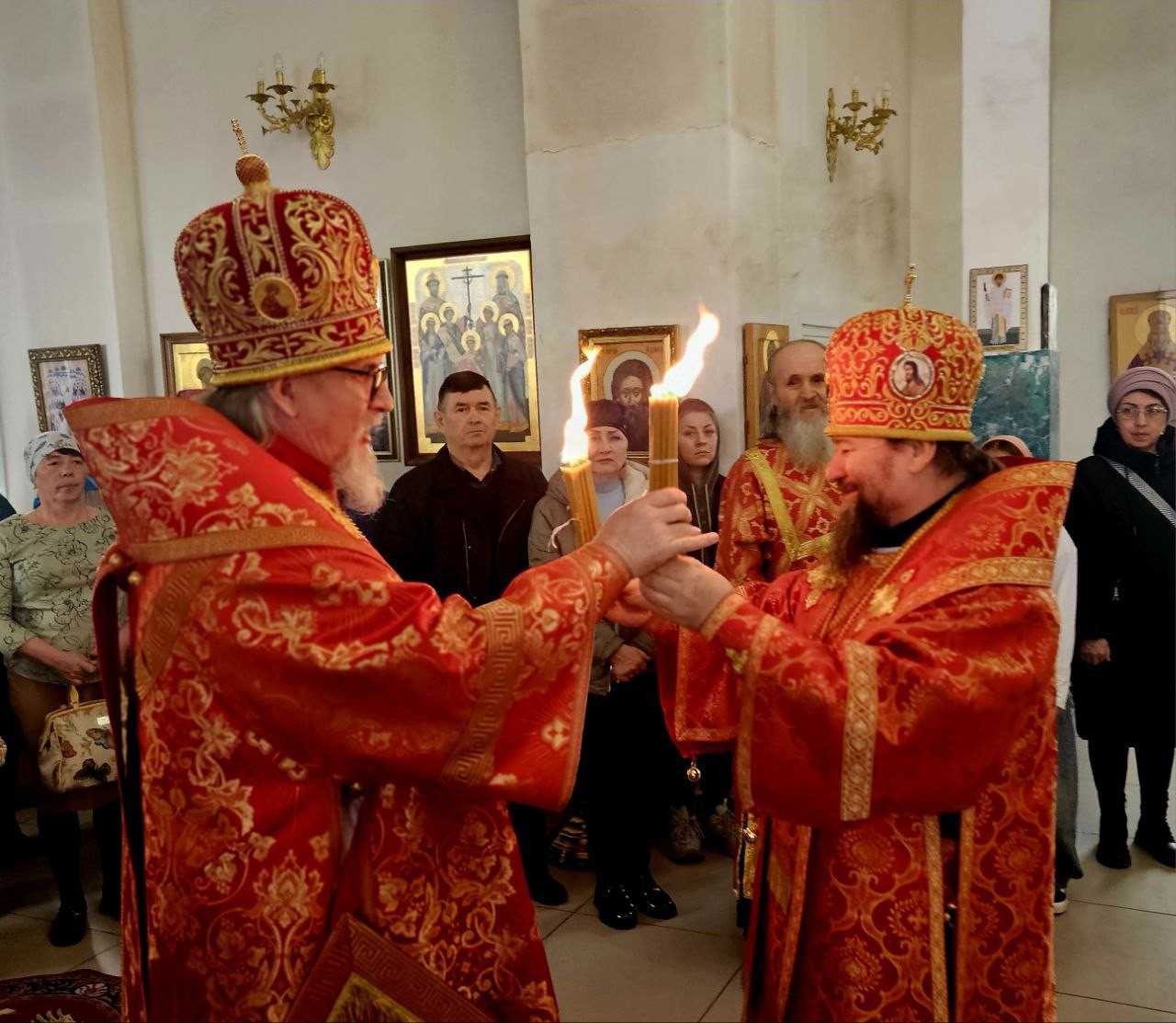 Вечером 26 апреля 2025 года, в канун Недели 2-й по Пасхе, апостола Фомы, Антипасхи, митрополит Читинский и Петровск-Забайкальский Димитрий и епископ Нерчинский и Краснокаменский Макарий совершили всенощное бдение в храме святых первоверховных апостолов Петра и Павла в г. Шилка. Перед началом богослужения прихожане зажгли свечи и лампады от пламени Благодатного огня, доставленного митрополитом Димитрием в Нерчинскую епархию. Архипастырям сослужило духовенство Читинской и Нерчинской епархий. Во время всенощного бдения были совершены великая вечерня, лития с освящением хлебов, вина и елея и утреня с чтением Евангелия и помазанием всех молящихся освященным елеем. По окончании богослужения архипастыри обменялись подарками и поздравлениями с праздником Светлого Христова Воскресения. ©Нерчинская епархия