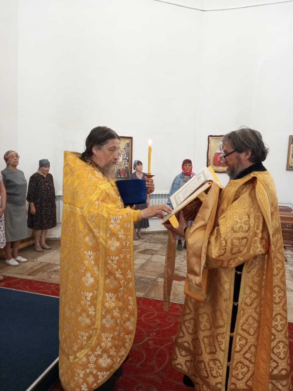 По благословению епископа Нерчинского и Краснокаменского Макария, вечером 12 июля 2025 года, в канун Недели 5-й по Пятидесятнице и накануне дня празднования Собора славных и всехвальных 12-ти апостолов, настоятель храма преподобного Амвросия Оптинского в посёлке Первомайский Шилкинского района иерей Лев Клюев совершил всенощное бдение в кафедральном соборе Воскресения Христова в Нерчинске. ©Нерчинская епархия