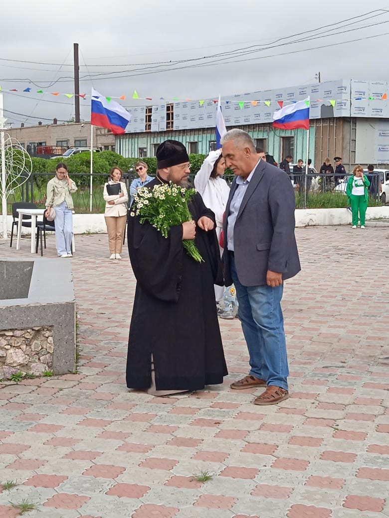 8 июля 2025 года, в день празднования памяти благоверных князя Петра и княгини Февронии, Муромских чудотворцев, настоятель храма Вознесения Господня пгт. Забайкальск игумен Симеон (Зимняков), принял участие в мероприятии посвященном Дню семьи, любви и верности. В этот день в Забайкальске состоялся праздничный концерт, перед началом которого глава Забайкальского муниципального округа Мочалов А.В. поздравил с праздником как семьи много лет проживших вместе, так и тех, кто только начинает свой путь вместе. Глава округа подчеркнул важность сохранения традиционных семейных ценностей и пожелал всем крепкого здоровья, счастья и благополучия. Игумен Симеон обращаясь к собравшимся поздравил всех с днем памяти святых Петра и Февронии, отметив, что их история – это пример для подражания. Жизнь святых супругов, полная испытаний и преодоления трудностей, служит наглядным воплощением качеств, как терпение, взаимопонимание, верность и беззаветная любовь. Отец Симеон подчеркнул, что молитва и вера в Бога помогают преодолеть любые жизненные преграды и сохранить семейное счастье. Творческие коллективы Забайкальска порадовали зрителей выступлениями, наполненными песнями о любви, семье и верности. Прихожане Вознесенского храма исполнили гимн Петру и Февронии. ©Нерчинская епархия