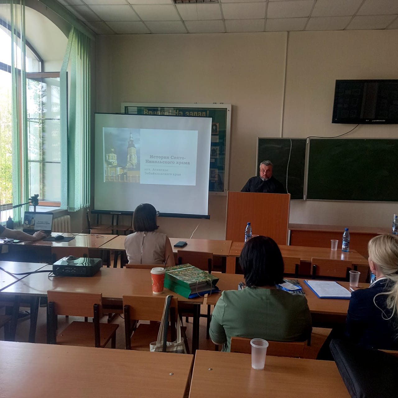 25 июня 2025 года в рамках проходящего в Чите Всероссийского православного форума «Православные храмы, как объекты культурного наследия» на тематических секциях священнослужители Нерчинской епархии по благословению епископа Нерчинского и Краснокаменского Макария выступили с докладами. На секции «Опыт сохранения культурного наследия православных храмов в регионах России»: настоятель храма преподобного Амвросия Оптинского, пгт. Первомайский Шилкинского района иерей Лев Клюев «История кафедрального собора Воскресения Христова г. Нерчинска: прошлое и настоящее». На секции «История Православия в Забайкалье»: настоятель храма святителя Николая Чудотворца, пгт. Карымское иерей Валерий Шемелин «Храм с. Кайдалово Карымского района: история, события, наследие». На секции «Роль Православной Церкви в духовно-нравственном воспитании личности»: благочинный Чернышевского церковного округа, настоятель храма Рождества Пресвятой Богородицы пгт. Чернышевск протоиерей Андрей Кисов «Храм Спаса Нерукотворного в с. Курлыч, духовный центр Чернышевского района»; клирик Свято-Никольского храма пгт. Агинское диакон Андрей Окладников «История Свято-Никольского храма пгт. Агинское Забайкальского края». Мероприятие в регионе проходит три дня, в нем принимают участие представители Забайкальской митрополии, историки, краеведы, представители научного сообщества. Напомним, что 2025 год объявлен губернатором края Александром Осиповым Годом объектов культурного наследия в Забайкалье. ©Нерчинская епархия