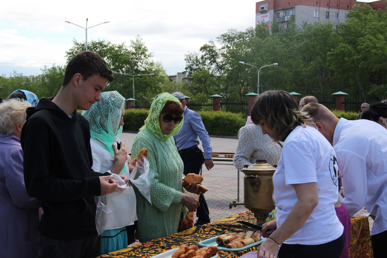 8 июня 2025 года, в праздник Святой Троицы (Пятидесятницы), на площадке перед соборным храмом Спаса Нерукотворного Образа в Краснокаменске состоялась традиционная семейная праздничная программа «Троицкий хоровод». Настоятель храма игумен Симеон (Зимняков) обращаясь к участникам мероприятия подчеркнул связь праздника с духовным возрождением не только личности, но и народа. Молодые прихожане Анастасия и Николай провели викторину «Традиция или суеверие?» и рассказали о добрых обычаях проведения девичьих гуляний, хороводах и играх в России. Для краснокаменцев выступили творческие коллективы Дома культуры «Строитель», образцовый ансамбль танца «Созвездие» и детский ансамбль танца «Метеорики», которые вовлекли в общий хоровод всех гостей праздника. Местное отделение «Русской Общины» порадовало чаем из самовара с пирогами и игровой площадкой «Русский двор». Традиции гостеприимства, внимание к детям и уважение к старшим, любовь и единство — вот основные мотивы праздничного мероприятия. В 2025 году по благословению Преосвященнейшего Макария, епископа Нерчинского и Краснокаменского в программу праздника была включена миссионерская акция «Троица — праздник любви и единства» с раздачей просветительских буклетов Синодального миссионерского отдела. Привет, ©Нерчинская епархия