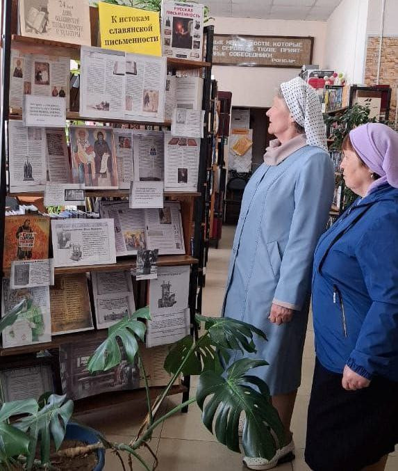 24 мая 2025 года, по благословению епископа Нерчинского и Краснокаменского Макария, в стенах МУК Забайкальская библиотечная система состоялось открытие выставки «К истокам славянской письменности», приуроченной ко Дню славянской письменности и культуры. Выставка организована сотрудниками библиотеки и приходом храма Вознесения Господня пгт. Забайкальск. Центральное место занимают материалы, посвященные святым равноапостольным Кириллу и Мефодию – создателям славянской азбуки, а также Ивану Фёдорову – первому русскому книгопечатнику. Выставку посетили жители и гости посёлка Забайкальск, прихожане храма Вознесения Господня. ©Нерчинская епархия