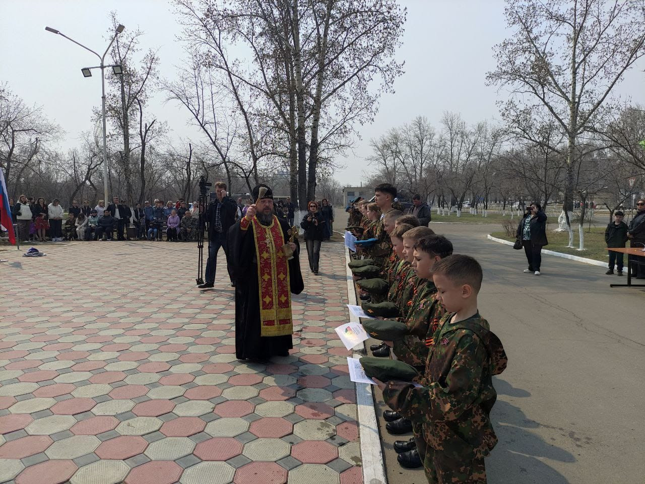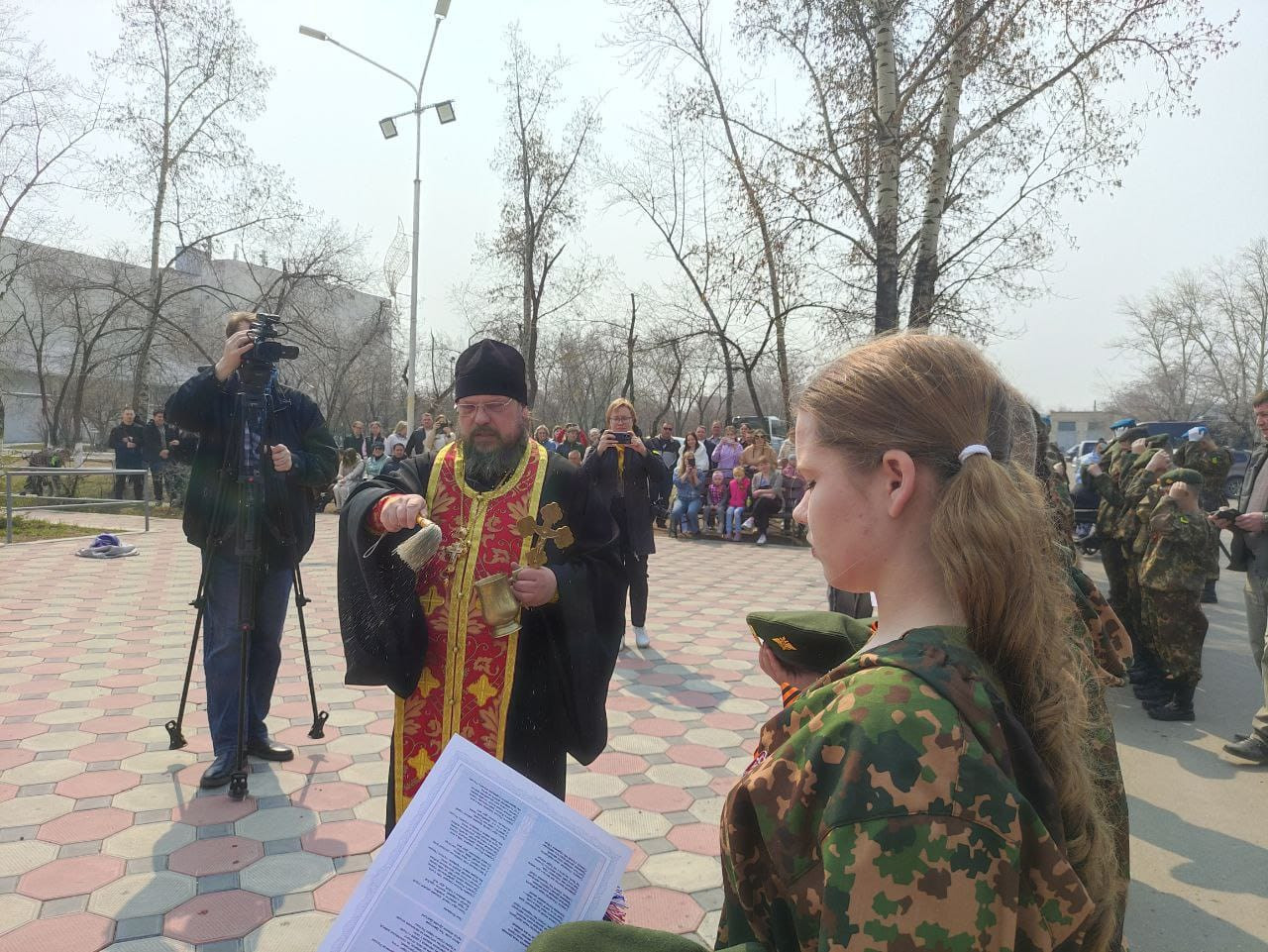 Священнослужитель принял участие в церемонии принятия присяги юнармейцами ВПК «Зарница» в Краснокаменске