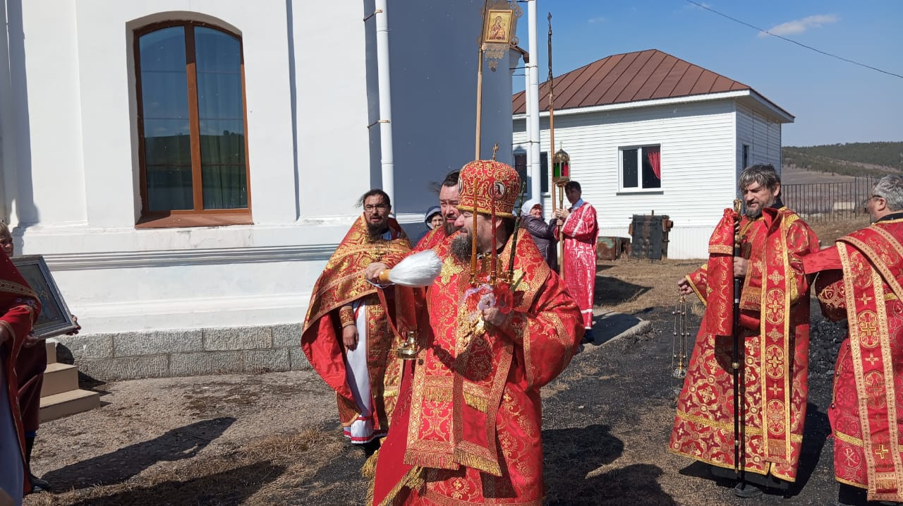 24 апреля 2025 года, в четверг Светлой седмицы, епископ Нерчинский и Краснокаменский Макарий совершил Божественную литургию в Спасском храме в селе Курлыч, Чернышевского района. Его Преосвященству сослужили: благочинный Чернышевского церковного округа, настоятель Спасского храма в селе Курлыч, Чернышевского района протоиерей Андрей Кисов; ключарь кафедрального собора Воскресения Христова г. Нерчинска иерей Роман Пичуев. Диаконский чин: диакон Андрей Окладников, диакон Игорь Радьков. На Литургии по благословению Святейшего Патриарха Московского и всея Руси Кирилла на сугубой ектении были вознесены особые прошения и молитва о Святой Руси. На малом входе епископ Макарий во внимание к усердным трудам на благо Святой Христовой Церкви и ко дню Святой Пасхи 2025 года удостоил правом ношения камилавки иерея Романа Пичуева. В этот день был совершен крестный ход вокруг храма. По окончании богослужения, протоиерей Андрей Кисов обратился к епископу Макарию и поздравил его со Светлым Христовым Воскресением. Отец Андрей от лица всего духовенства Нерчинской епархии выразил искренние пожелания здоровья, благополучия, неиссякаемой энергии и Божьего благословения в его архипастырском служении. В знак уважения и признательности он преподнес архипастырю архиерейский жезл — символ духовной власти и заботы о пастве. Епископ Макарий поздравил верующих со Светлой Пасхой и обратился к молящимся с архипастырским словом напомнив о глубоком смысле Воскресения Христова и призвав всех к жизни по заповедям Божьим. На память о богослужении все участники собрались для совместной фотографии с с владыкой. ©Нерчинская епархия