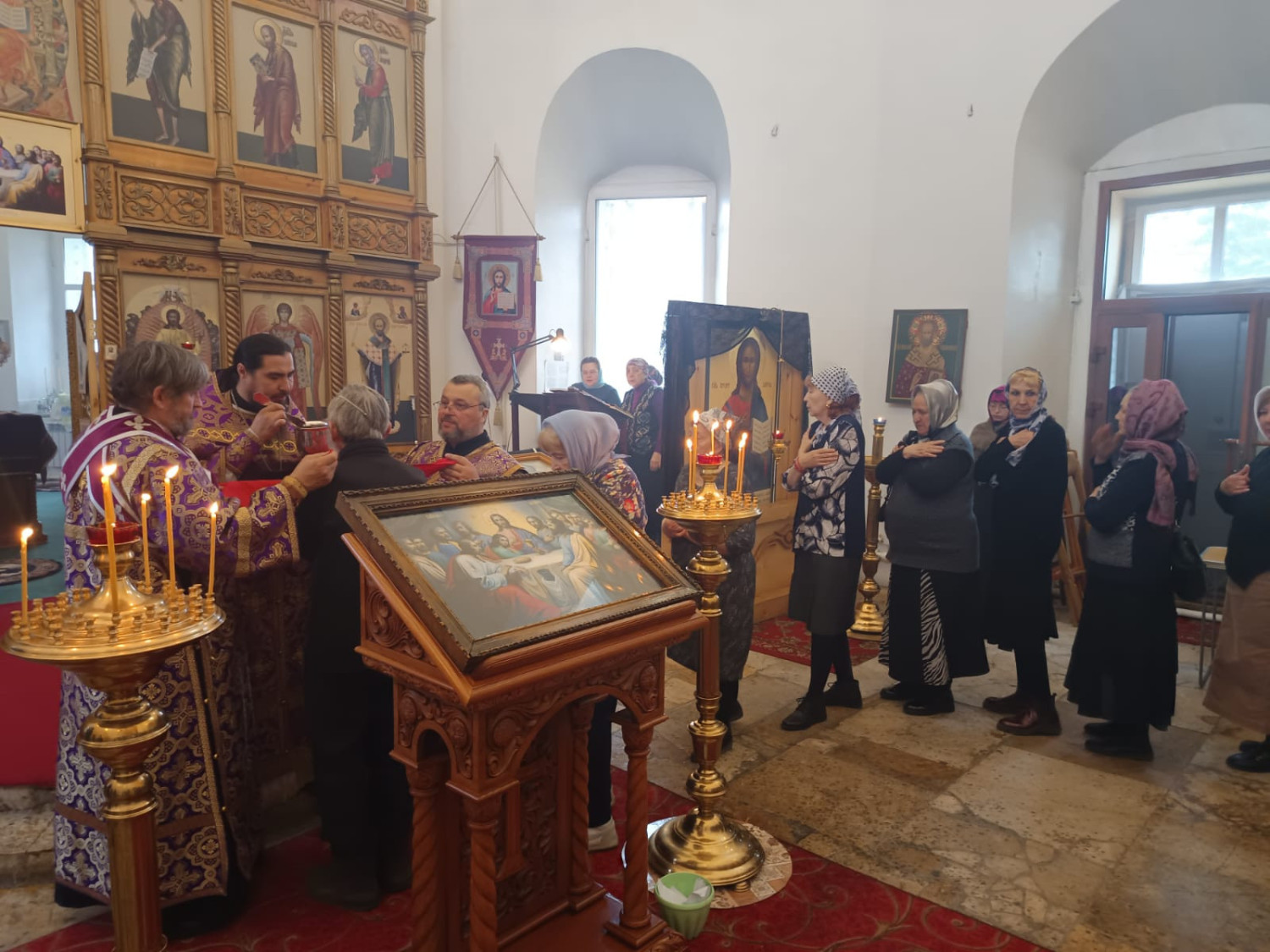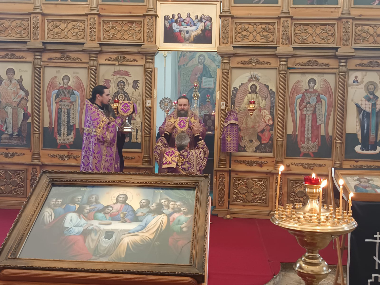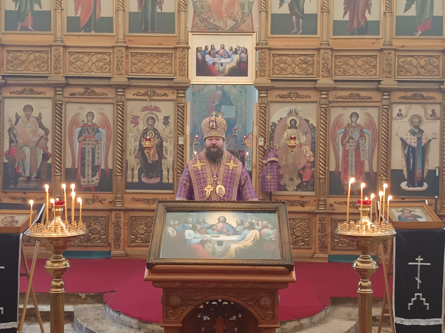 17 апреля 2025 года, в Великий Четверток, день Воспоминания Тайной Вечери, епископ Нерчинский и Краснокаменский Макарий совершил Божественную литургию святителя Василия Великого в кафедральном соборе Воскресения Христова в Нерчинске. Его Преосвященству сослужил клирик Воскресенского кафедрального собора г. Нерчинска иерей Роман Пичуев. Диаконский чин: диакон Андрей Окладников, диакон Игорь Радьков. Богослужебные песнопения исполнил хор Воскресенского кафедрального собора г. Нерчинска. По благословению Святейшего Патриарха Московского и всея Руси Кирилла на сугубой ектении были вознесены особые прошения и молитва о Святой Руси. По окончании богослужения епископ Макарий обратился к молящимся с архипастырским словом и напомнил, что Таинство Причащения соединяет верующего человека со Христом. Владыка отметил, что подготовка к причастию требует искреннего покаяния и стремления к очищению души, искреннего желания принять Христа в свое сердце. В заключение проповеди архипастырь благословил молящихся, пожелав им крепости в вере и духовной радости. В Великий Четверг Страстной седмицы Православная Церковь вспоминает Тайную Вечерю Господа Иисуса Христа со Своими учениками и установление Им Таинства Евхаристии (Святого Причащения). Тайная Вечеря описывается у всех четырех евангелистов. Это была последняя беседа и трапеза Господа с учениками перед Его страданиями. ©Нерчинская епархия