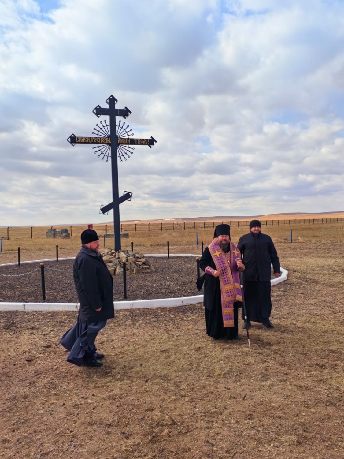 30 марта 2025 года епископ Нерчинский и Краснокаменский Макарий посетил Забайкальский район, где находится место соединения трех Государственных границ России, Монголии и Китая. Его Преосвященство сопровождал секретарь Нерчинской епархии игумен Симеон (Зимняков). У поклонного креста были пропеты тропарь и кондак Честному и Животворящему Кресту Господню. На территории сельского поселения «Даурское» расположен «стык трех границ» (России, Китая и Монголии), который представляет собой тригопункт, на каждой из трех граней которого написано название государства, к которому она обращена. Возле указанного пограничного знака в 2006 году установлен православный крест высотой около 3 метров, символизирующий начало земли русской. ©Нерчинская епархия
