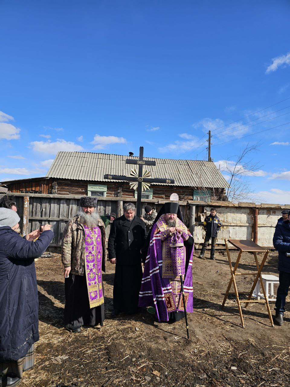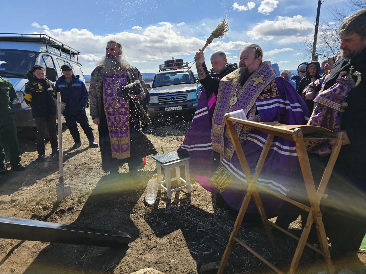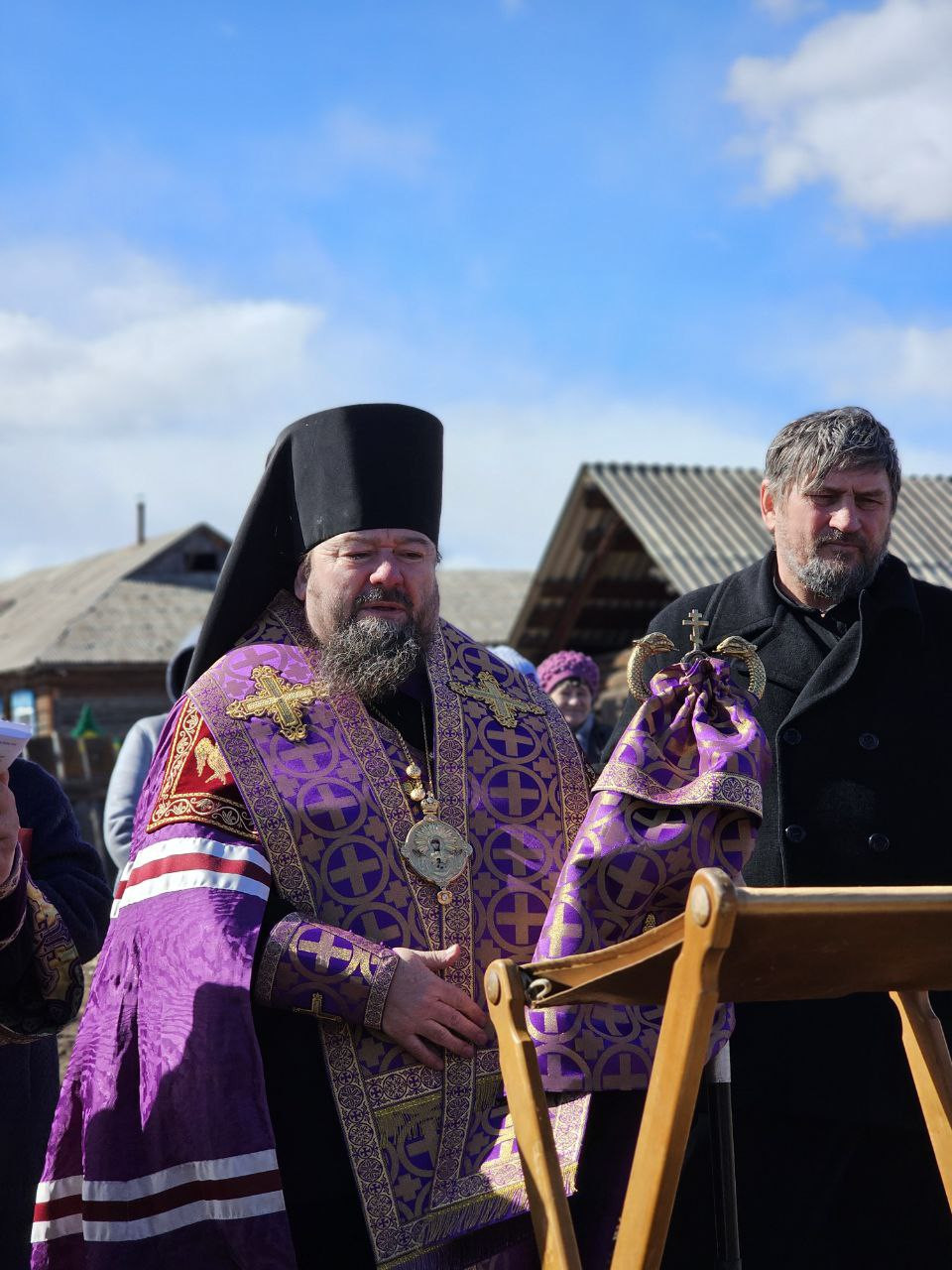 Архипастырь совершил чин закладки храма в честь Иверской иконы Божией Матери в селе Кыкер Тунгокоченского района