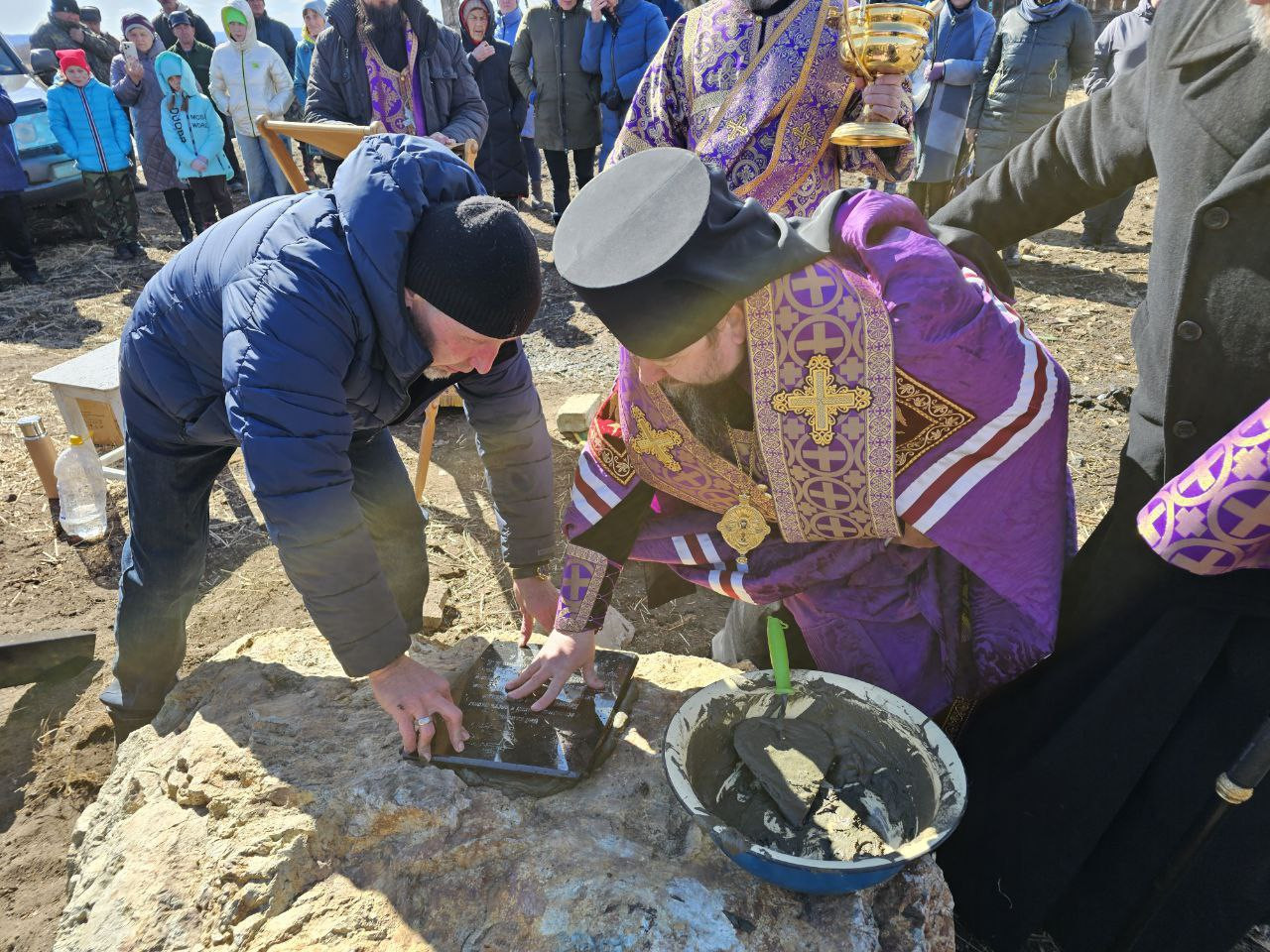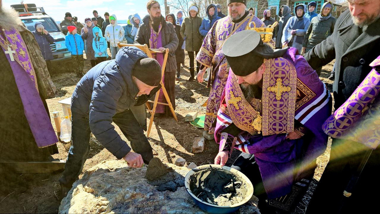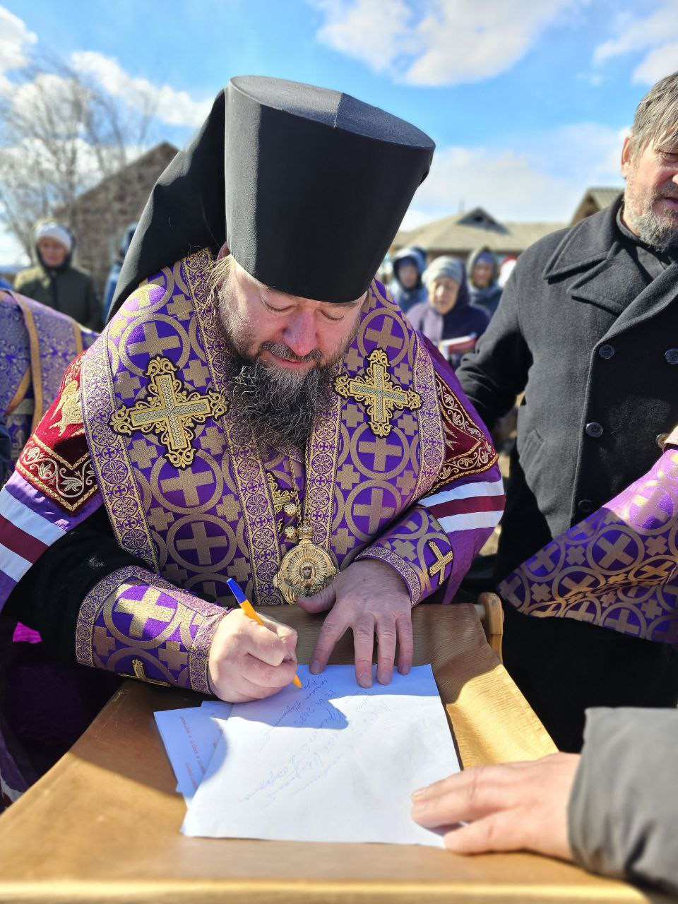 Архипастырь совершил чин закладки храма в честь Иверской иконы Божией Матери в селе Кыкер Тунгокоченского района