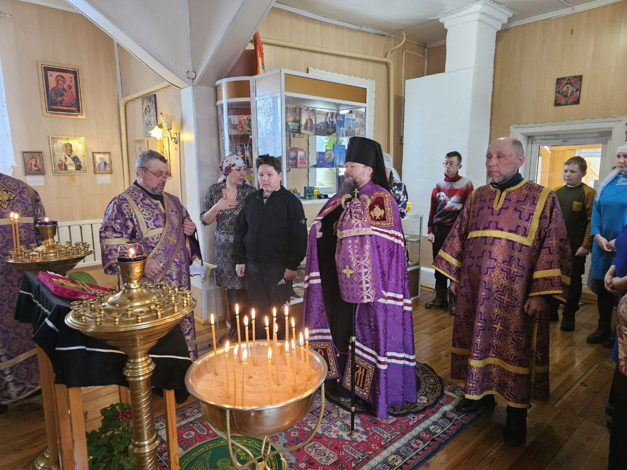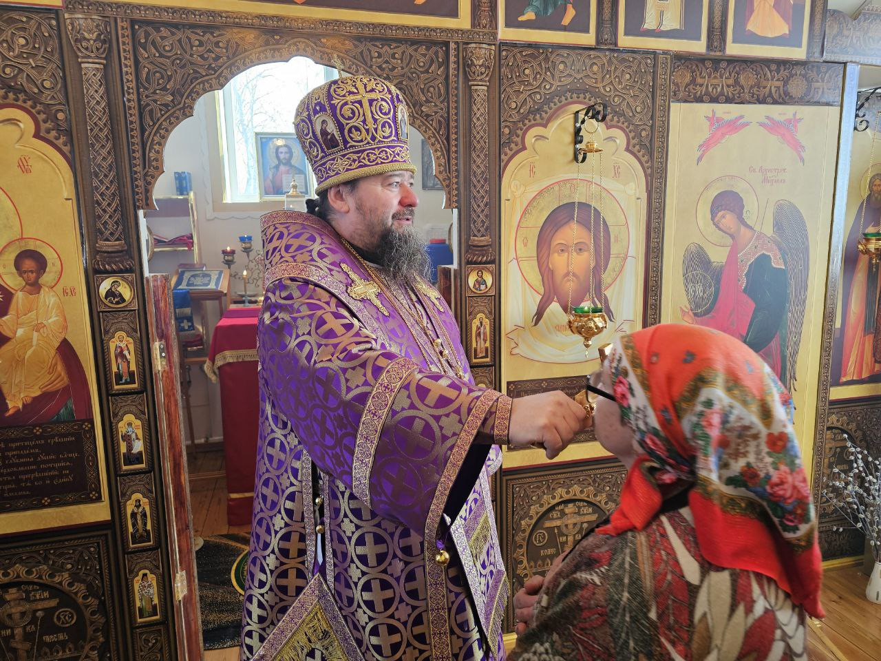 23 марта 2025 года, в Неделю 3-ю Великого поста, Крестопоклонную, епископ Нерчинский и Краснокаменский Макарий совершил Литургию святителя Василия Великого в храме Воздвижения Креста Господня в селе Тунгокочен. Его Преосвященству сослужили: благочинный Нерчинского церковного округа, настоятель Крестовоздвиженского храма с. Тунгокочен протоиерей Александр Тылькевич; клирик Воскресенского кафедрального собора г. Нерчинск иерей Роман Пичуев. Диаконский чин: диакон Андрей Окладников. По благословению Святейшего Патриарха Московского и всея Руси Кирилла на сугубой ектении были вознесены особые прошения и молитва о Святой Руси. По завершении Литургии было совершено поклонение Честному и Животворящему Кресту Господню и епископ Макарий обратился к верующим с архипастырским словом. В своей проповеди владыка подчеркнул особое значение Крестопоклонной Недели, напомнив, что Крест — это знак безграничной любви Божией к человечеству. Он рассказал о жертвоприношении Спасителя, о глубине Его страданий и о беспредельной силе Его любви, преодолевшей смерть. Владыка Макарий призвал верующих не унывать перед жизненными испытаниями, а принять их с доверием к Богу, ища в них духовного опыта и укрепления веры. ©Нерчинская епархия