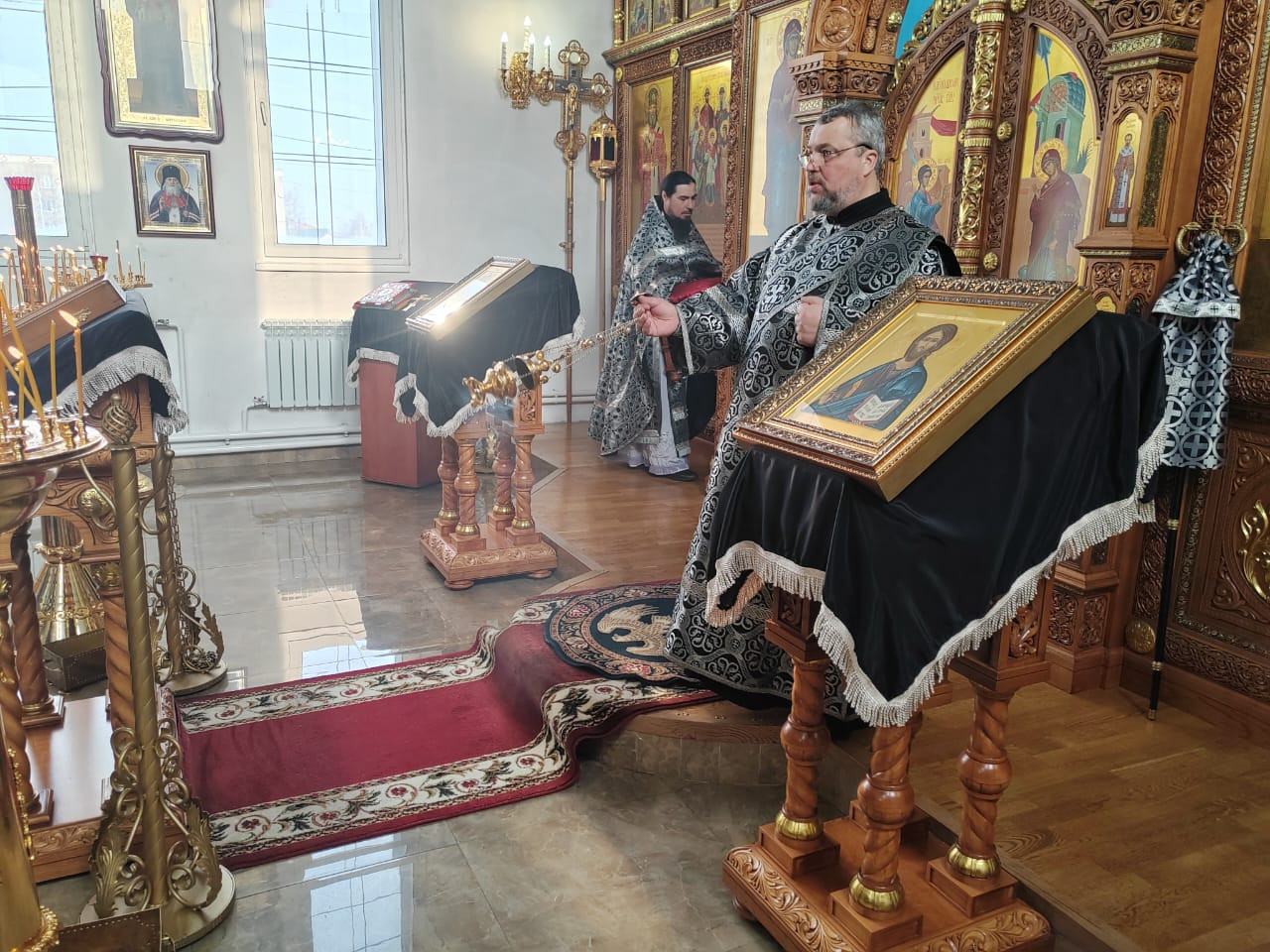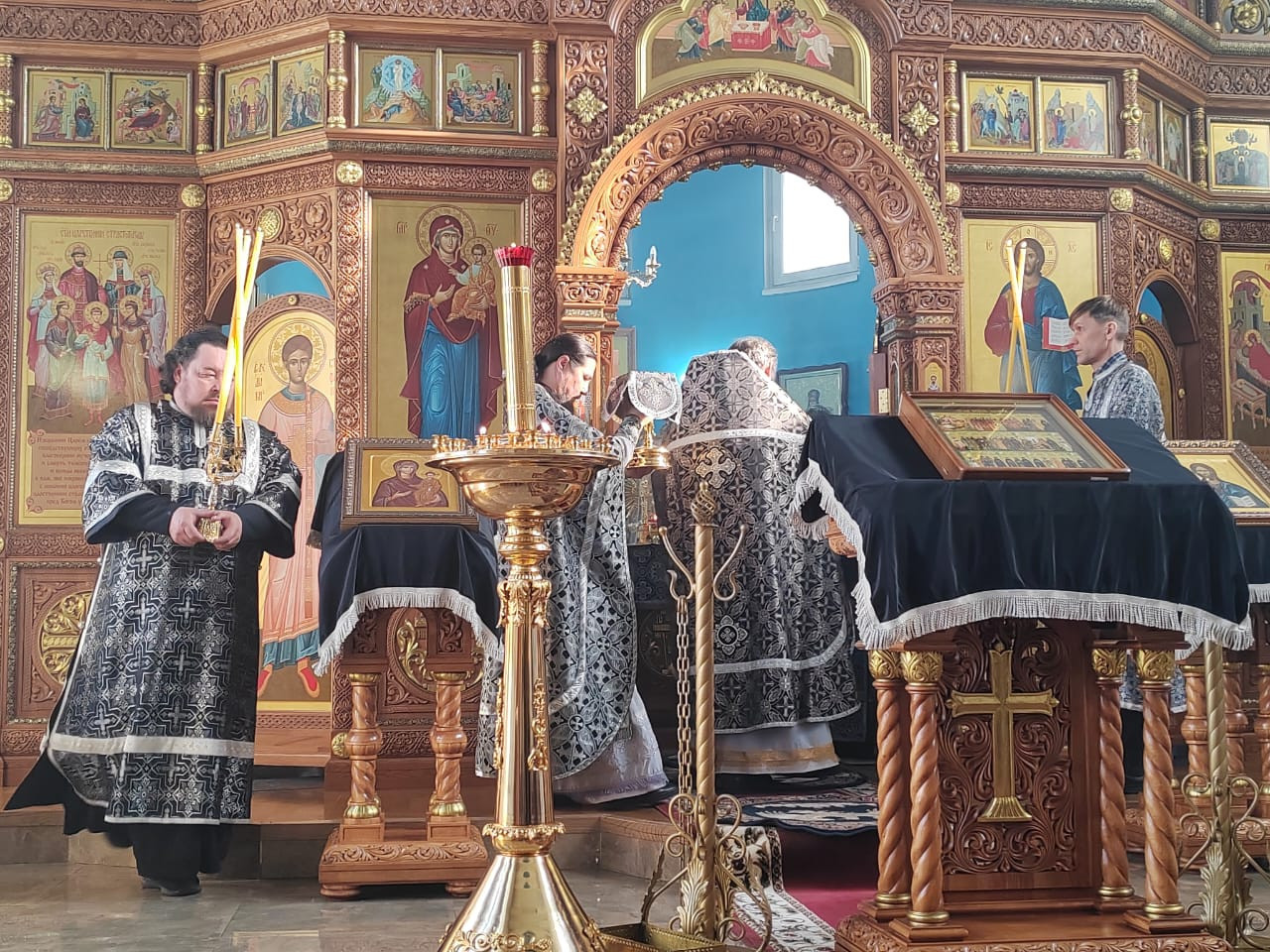 7 марта 2025 года, в пятницу первой седмицы Великого поста, епископ Нерчинский и Краснокаменский Макарий совершил Литургию Преждеосвященных Даров в храме Рождества Пресвятой Богородицы в пгт. Чернышевск. Перед Литургией были совершены уставные великопостные богослужения — утреня, часы, изобразительны и вечерня. Его Преосвященству сослужили: настоятель храма Рождества Пресвятой Богородицы в пгт. Чернышевск протоиерей Андрей Кисов; клирик Воскресенского кафедрального собора г. Нерчинска иерей Роман Пичуев. Диаконский чин: диакон Андрей Окладников. По благословению Святейшего Патриарха Московского и всея Руси Кирилла на сугубой ектении были вознесены особые прошения и молитва о Святой Руси. По заамвонной молитве был совершен чин молебного пения великомученику Феодору Тирону, в завершении которого была прочитана молитва на освящение колива. По окончании Литургии владыка Макарий обратился к молящимся с архипастырским словом. Коливом в традиции Православной Церкви называется простая постная пища, состоящая из вареной пшеницы или риса с добавлением меда, сухофруктов и орехов. Традиция освящения колива в пятницу первой седмицы Великого поста берет начало в IV веке. Римский император Юлиан Отступник, желая помешать христианам соблюдать пост, приказал градоначальнику Константинополя окроплять в первую седмицу Великого поста все съестные припасы на рынках идоложертвенной кровью. Святой великомученик Феодор Тирон, явившись во сне архиепископу Евдоксию, повелел ему объявить всем христианам, чтобы никто не покупал ничего на рынках, а ели вареную пшеницу с медом — коливо (кутью или сочиво). Святой великомученик Феодор Тирон особым образом покровительствует христианам в дни поста, своим молитвенным предстательством оберегая верных от соблазнов и искушений. В память этого события Православная Церковь ежегодно совершает празднование в субботу первой недели Великого поста. В пятницу, в завершение Божественной Литургии Преждеосвященных даров читается молебный канон великомученику Феодору, составленный преподобным Иоанном Дамаскиным, после чего коливо благословляется и раздается верующим. ©Нерчинская епархия