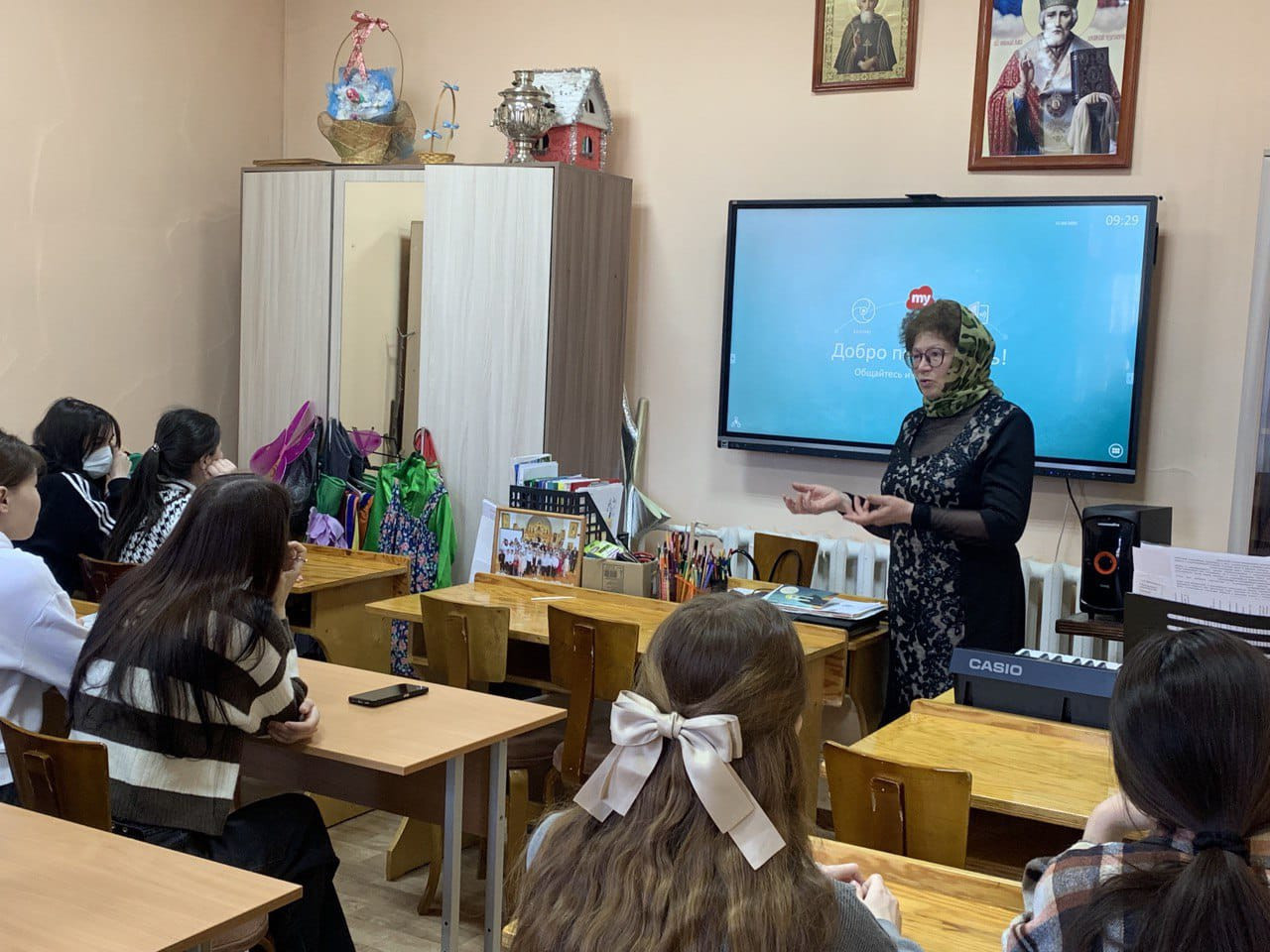 В храме святителя Николая Чудотворца в пгт. Агинское прошел ряд мероприятий посвященных 100-летию со дня блаженной кончины святителя Тихона, Патриарха Московского и всея России. Настоятель храма, протоиерей Валерий Компаниец провел беседу с прихожанами, посвящённую жизни и деятельности святителя Тихона. Он рассказал о мрачной эпохе революционных потрясений и жестоких гонений на Русскую Православную Церковь, показав, как стойкость и вера святителя Тихона стали символом надежды для миллионов верующих. Беседа, подкреплённая просмотром документального фильма о Патриархе, вызвала живой отклик в сердцах присутствующих. Особое внимание отец Валерий уделил актуальности молитвы о спасении России, подчеркнув её важность в нынешнее непростое время. Священник объяснил, что молитва «О спасении державы Российской, утолении в ней раздоров» — это действенное средство укрепления духовности и единства народа. С воспитанниками воскресной школы отец Валерий провел занятие, посвященное молитве как неотъемлемой части жизни человека. Беседа затронула важный аспект – нравственное воспитание, в частности, проблему сквернословия. Детям доступно и убедительно было разъяснено, почему использование нецензурных выражений недопустимо, являясь своего рода «антимолитвой», противоречащей самой сути молитвы. Кроме того, батюшка объяснил важность молитвы за Россию, отвечая на многочисленные детские вопросы. Завершилось занятие чтением книги о жизни и деятельности Патриарха Тихона, что позволило детям глубже погрузиться в эпоху и понять масштаб личности святителя. Также ответственная за работу с молодёжью, Шильникова Е.А., провела беседу со студентами Агинского педагогического колледжа. Тема встречи «В годину тяжкую Богом избранный», была посвящена испытаниям, выпавшим на долю Православной Церкви в начале XX века, и роли святителя Тихона в этот период. Студенты, так же, как и прихожане, просмотрели фильм о Патриархе, что способствовало более полному пониманию сложного исторического контекста и значимости личности святителя Тихона для истории России. Опыт Агинского храма может служить хорошим примером для других приходов в организации подобных мероприятий, способствующих укреплению духовных основ общества. ©Нерчинская епархия