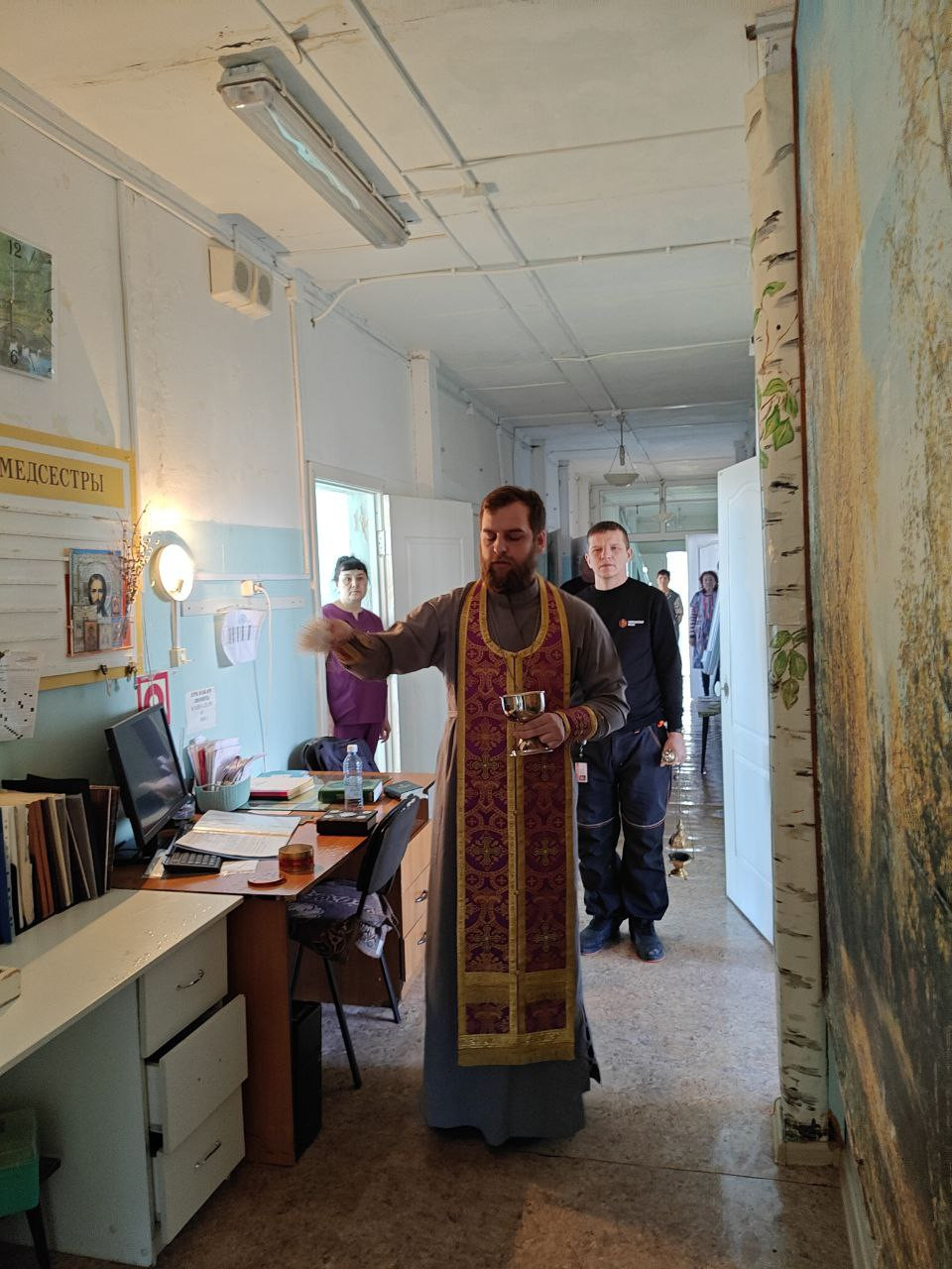 20 марта 2025 года, по благословению епископа Нерчинского и Краснокаменского Макария, миссионер из Белгородской епархии иерей Даниил Тарасовский совершил освящение помещений Каларской центральной районной больницы в селе Чара Каларского муниципального округа. После освящения священнослужитель обратился к медицинскому персоналу с пастырским словом. Он подчеркнул важность их работы и призвал к милосердию и заботе о пациентах. Священник напомнил, что каждый врач и медсестра не только лечат физические недуги, но и оказывают духовную поддержку тем, кто страдает. Он призвал сотрудников больницы быть не только профессионалами в своем деле, но и добрыми, чуткими людьми, готовыми выслушать и поддержать пациентов в трудные моменты. ©Нерчинская епархия