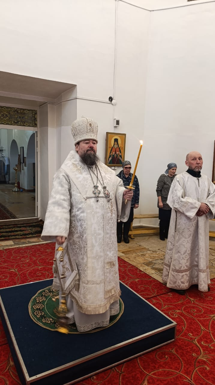 Вечером 14 февраля 2025 года, в канун праздника Сретения Господа Бога и Спаса нашего Иисуса Христа, епископ Нерчинский и Краснокаменский Макарий совершил всенощное бдение в кафедральном соборе Воскресения Христова в городе Нерчинске. Его Преосвященству сослужили: клирик Воскресенского кафедрального собора г. Нерчинска иерей Роман Пичуев. Диаконский чин: диакон Андрей Окладников. Богослужебные песнопения исполнил хор Воскресенского кафедрального собора г. Нерчинска. Во время всенощного бдения были совершены вечерня, лития с освящением хлебов, вина и елея и утреня с чтением Евангелия и помазанием всех молящихся освященным елеем. По завершении богослужения, епископ Макарий обратился к молящимся с архипастырским словом о значении праздника Сретения Господня. Он рассказал о библейской истории встречи младенца Иисуса со старцем Симеоном, который, согласно пророчеству, держал младенца Христа на руках и провозгласил его Спасителем мира. Владыка рассказал о пророчице Анне, которая также присутствовала в храме и восславила младенца Иисуса. Он обратил внимание прихожан на то, что необходимо следовать примеру Симеона и Анны, с верой и терпением ожидая встречи с Богом, неся свет христианской любви в мир, подобно тому, как младенец Христос осветил темный мир своим присутствием. Епископ Макарий напомнил о важности сохранения веры, особенно в современном мире, полном искушений и сомнений. Сретение Господне – это ежедневный призыв к духовному обновлению и стремлению к совершенствованию, к тому, чтобы нести в себе свет Христов и делиться им с окружающими. По окончании проповеди епископ Макарий благословил верующих и призвал каждого из них стать светочем для своих ближних. ©Нерчинская епархия