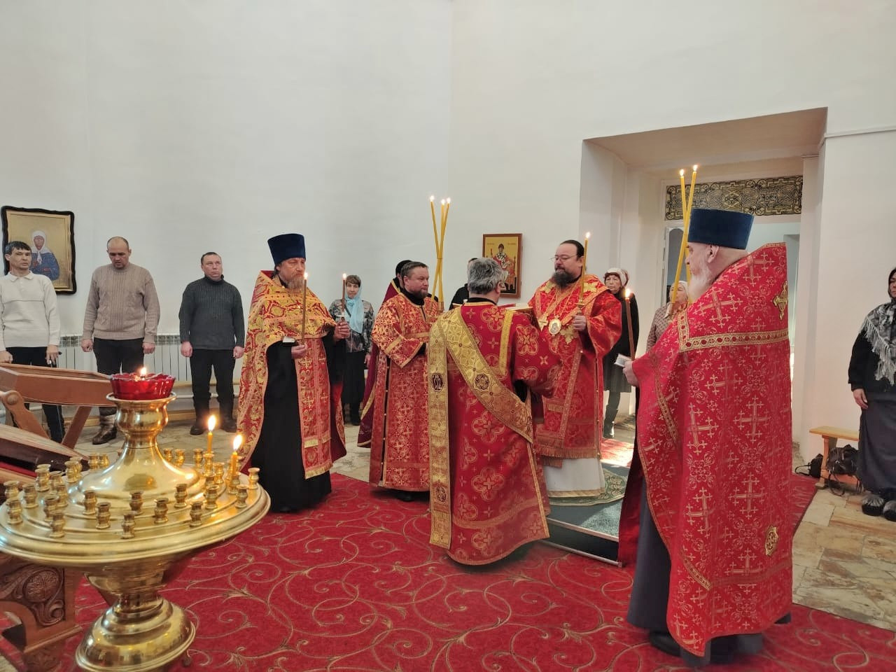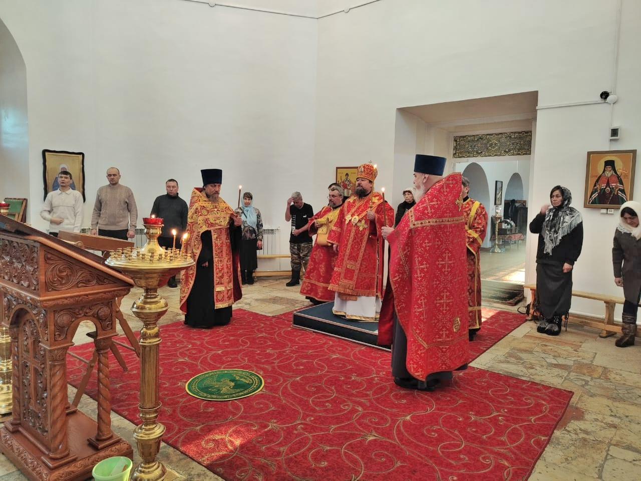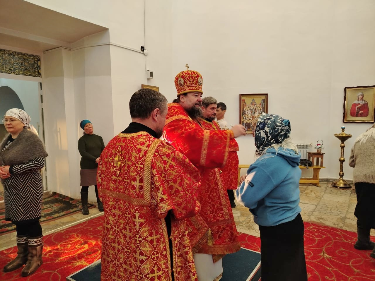 Вечером 8 января 2025 года, накануне Недели о мытаре и фарисее, в канун Собора новомучеников и исповедников Церкви Русской, и перенесения мощей святителя Иоанна Златоуста (438 г.), епископ Нерчинский и Краснокаменский Макарий совершил всенощное бдение в кафедральном соборе Воскресения Христова в городе Нерчинске. Его Преосвященству сослужили: настоятель храма преподобного Амвросия Оптинского в пгт. Первомайский Шилкинского района иерей Лев Клюев; настоятель храма апостола и евангелиста Луки в г. Балей иерей Владислав Петров; клирик Воскресенского кафедрального собора в г. Нерчинск иерей Роман Пичуев. Диаконский чин: диакон Андрей Окладников. Богослужебные песнопения исполнил хор Воскресенского кафедрального собора г. Нерчинска. Во время всенощного бдения были совершены вечерня, лития с освящением хлебов, вина и елея и утреня с чтением Евангелия и помазанием всех молящихся освященным елеем. По завершении богослужения, епископ Макарий обратился к молящимся с архипастырским словом и подчеркнул важность подвига новомучеников и исповедников Церкви Русской, которые, несмотря на гонения и страдания, сохранили верность Христу и своей вере. Он призвал прихожан помнить о их примере и стремиться к духовному росту, укрепляя свою веру. ©Нерчинская епархия