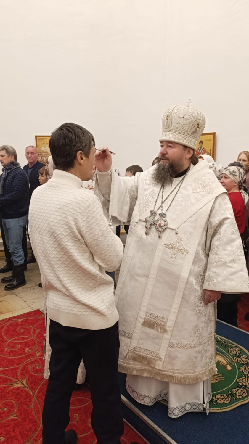 В ночь с 6 на 7 января 2025 года, в праздник Рождества Господа Бога и Спаса нашего Иисуса Христа епископ Нерчинский и Краснокаменский Макарий совершил всенощное бдение и Божественную литургию святителя Иоанна Златоуста в кафедральном соборе Воскресения Христова в Нерчинске. Его Преосвященству сослужил клирик Воскресенского кафедрального собора г. Нерчинска иерей Роман Пичуев. Диаконский чин: диакон Андрей Окладников. Богослужебные песнопения исполнил хор Воскресенского кафедрального собора г. Нерчинска. Во время всенощного бдения были совершены великое повечерие, лития с освящением хлебов, вина и елея и утреня с чтением Евангелия и помазанием всех молящихся освященным елеем. За Божественной литургией по благословению Святейшего Патриарха Московского и всея Руси Кирилла на сугубой ектении были вознесены особые прошения и молитва о Святой Руси. По заамвонной молитве было совершено славление празднику Рождества Христова. Епископ Нерчинский и Краснокаменский Макарий огласил Рождественское послание Святейшего Патриарха Московского и всея Руси Кирилла архипастырям, пастырям, диаконам, монашествующим и всем верным чадам Русской Православной Церкви. По окончании богослужения епископ Макарий поздравил верующих с праздником Рождества Христова и обратился к молящимся с архипастырским словом. Он напомнил о глубоком значении праздника Рождества Христова – о воплощении Божественной любви, о приходе в мир Спасителя, принесшего надежду и спасение человечеству. Владыка пожелал всем верующим, чтобы истинным рождественским подарком друг другу стала взаимная любовь – любовь, основанная на вере, прощении и стремлении к духовному совершенствованию. Свет Рождества, по его словам, должен не только согревать наши сердца, но и освещать путь для всех окружающих нас людей, вне зависимости от их убеждений или образа жизни. Праздник Рождества Христова – это праздник всеобщей любви и надежды, и каждый православный христианин призван стать проводником этого света в мир, делая его чуточку лучше и добрее. Все молящиеся в храме были окроплены святой водой и получили Рождественские подарки. ©Нерчинская епархия