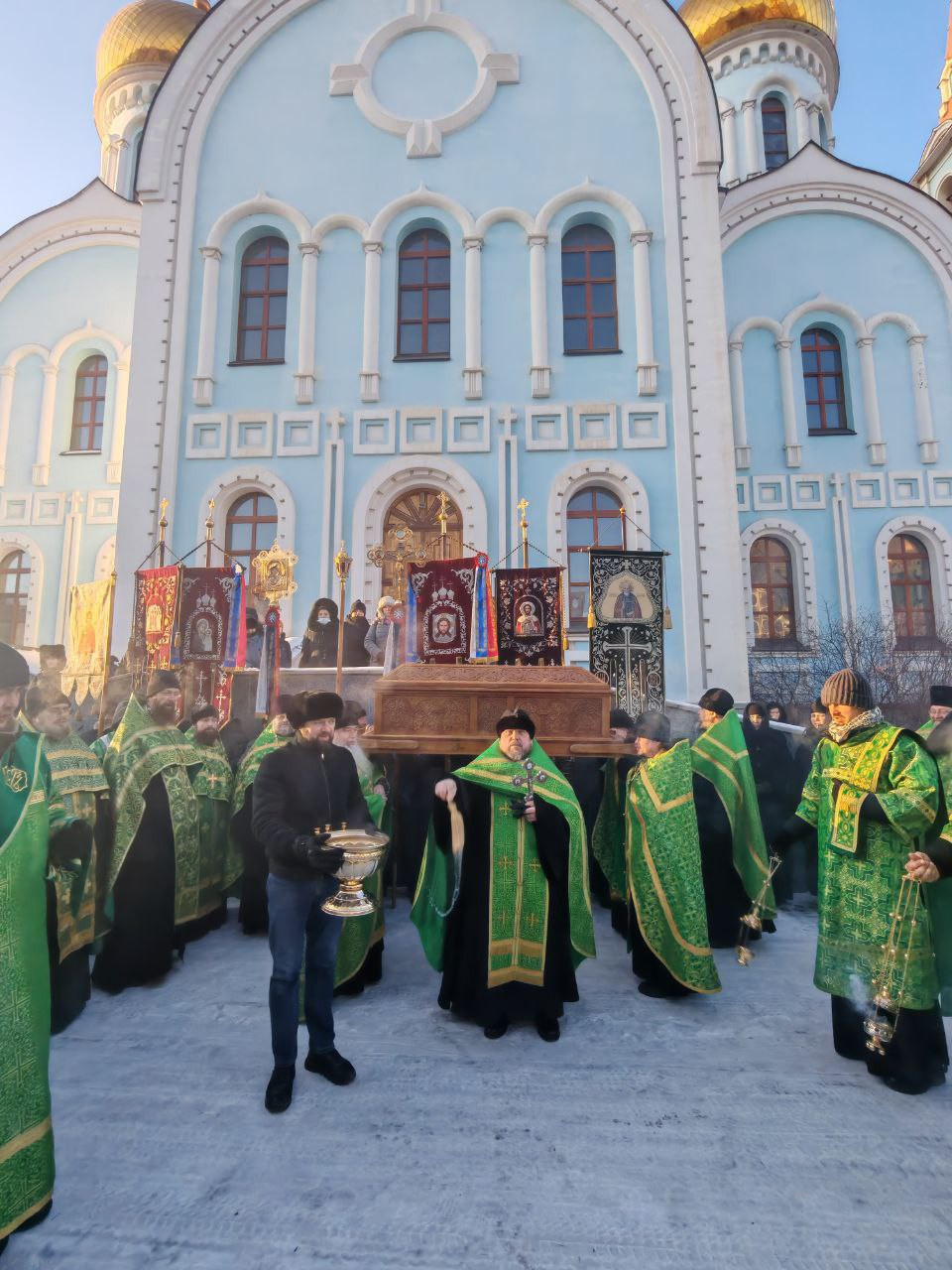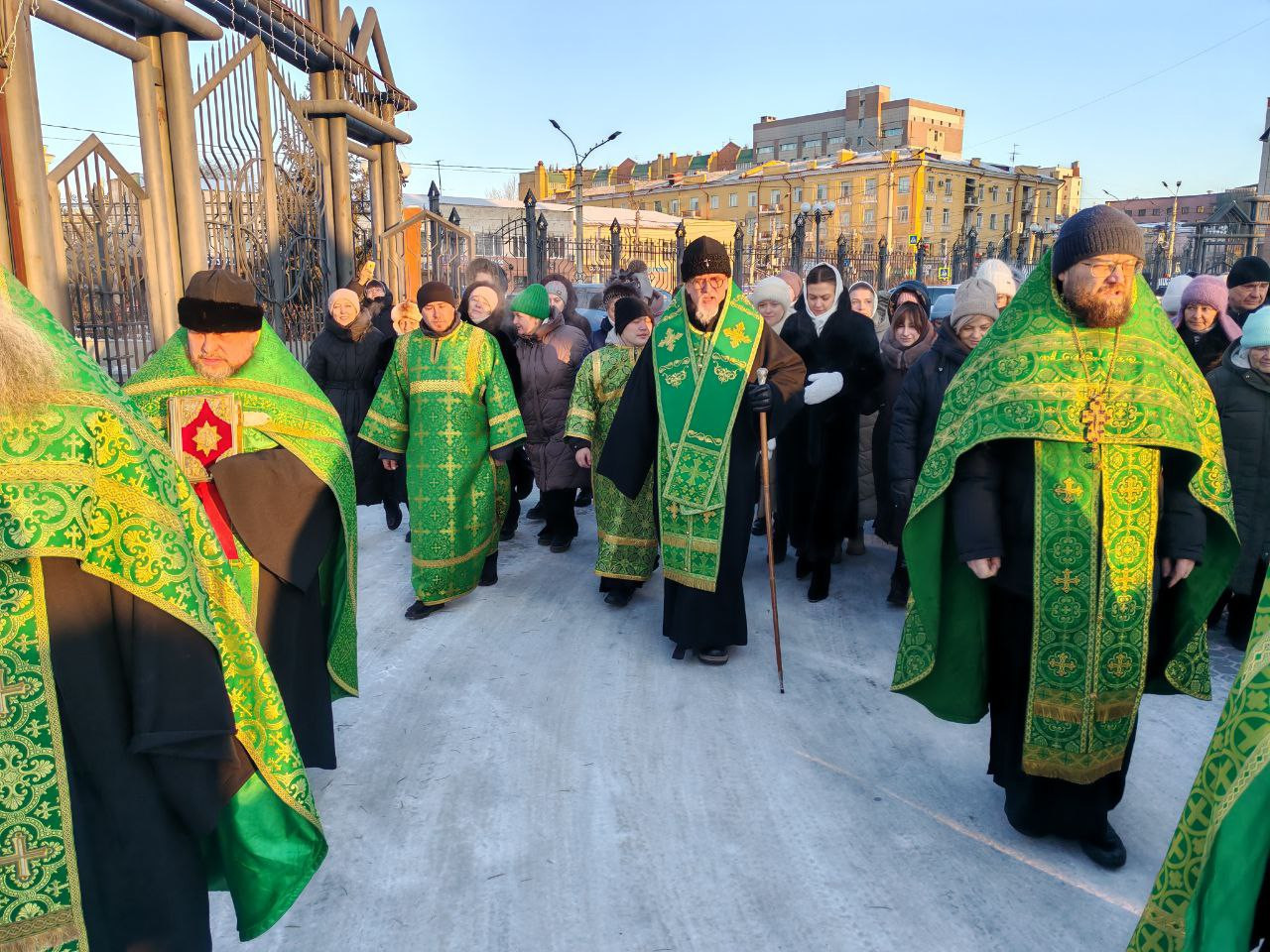 По завершении Литургии был совершен традиционный крестный ход посвященный преподобному Варлааму Чикойскому. Рака с мощами преподобного была обнесена вокруг Казанского кафедрального собора.