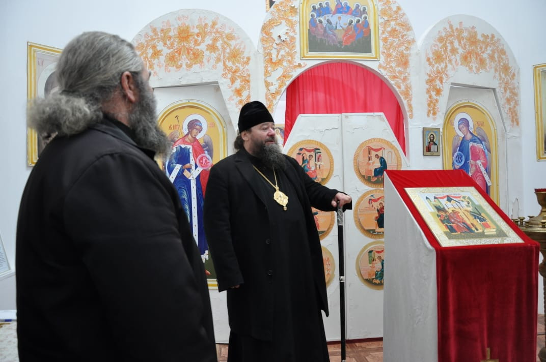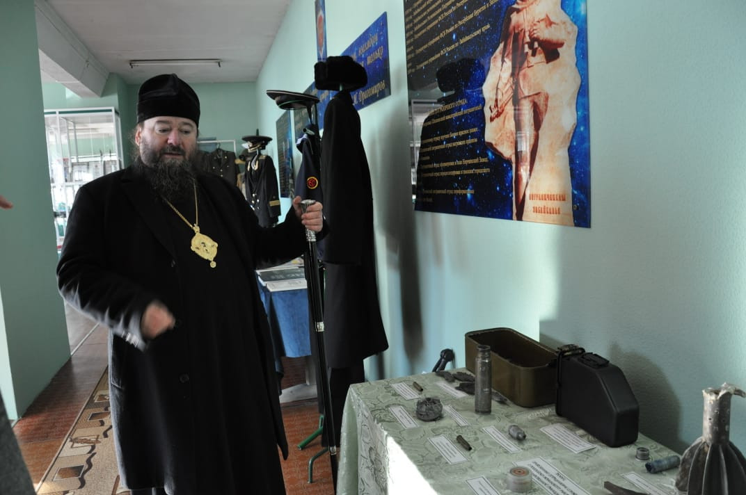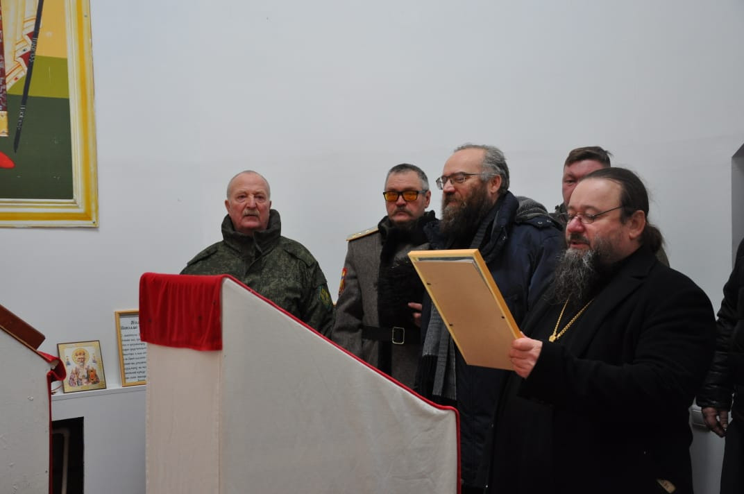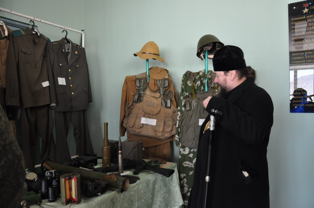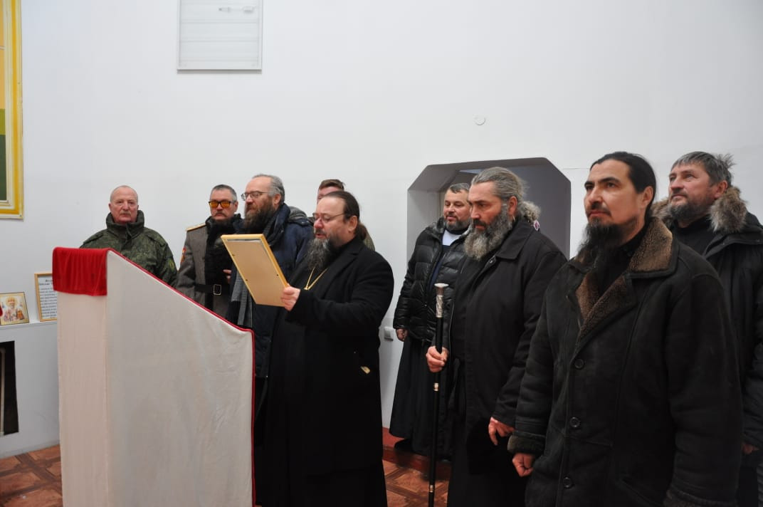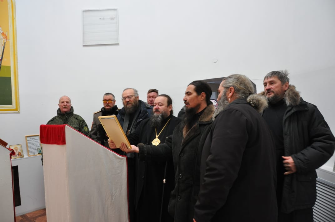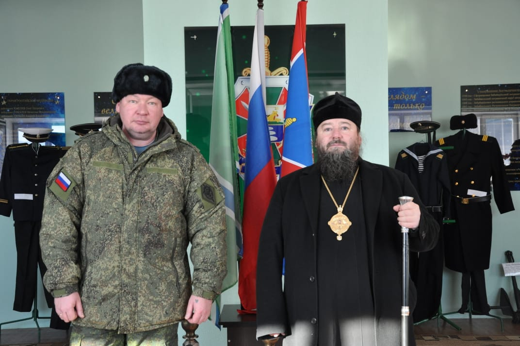 30 ноября 2024 года, по окончании Божественной литургии в храме Владимирской иконы Божией Матери в пгт. Кокуй Сретенского района, епископ Нерчинский и Краснокаменский Макарий посетил пограничный отряд в расположенный в поселке Кокуй. Его Преосвященство сопровождали: настоятель храма Владимирской иконы Божией Матери в пгт. Кокуй протоиерей Андрей Кисов; клирик Воскресенского кафедрального собора г. Нерчинска иерей Роман Пичуев; диакон Андрей Окладников; заместитель руководителя пограничного отряда; атаман станичного казачьего общества «Сретенская станица» Черновец Евгений Иванович; старейшина казачьего общества подъесаул Томилов Виктор Иванович. На территории пограничного отряда находится храм-часовня в честь святого благоверного великого князя Димитрия Донского. Небольшой деревянный храм был построен в 2005-м году. В храме-часовне владыка прочитал молитву благоверному князю Димитрию Донскому и вместе сопровождающими его священнослужителями спел кондак, тропарь и величание святому. Так же владыка обратился к присутствующим подчеркнув важность любви к Родине и отметил, что каждый воин должен не только исполнять свой долг, но и помнить о высоких ценностях, которые стоят за этой службой. Он призвал всех присутствующих помнить о подвиге князя Димитрия Донского, который в свое время защищал свою землю от врагов и вдохновлял своих соратников на героические поступки. Затем епископ Макарий посетил музей пограничного отряда, где собраны уникальные экспонаты, рассказывающие о становлении и развитии отряда с момента его создания в советский период до наших дней. Каждый экспонат имеет свою историю. Владыке Макарию было интересно узнать о том, как менялась служба пограничников, какие вызовы им приходилось преодолевать, и как они защищали границы страны в разные исторические эпохи. В заключение своего визита епископ Макарий поблагодарил военнослужащих за их преданность и службу, пожелав им крепости духа и Божьего благословения в их нелегком деле. ©Нерчинская епархия