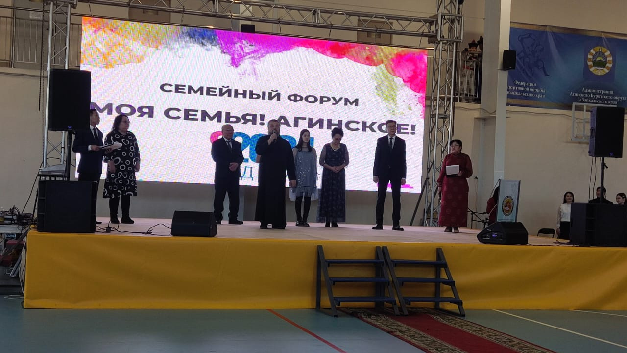 2 февраля 2024 года в посёлке Агинское в рамках Года семьи состоялся Семейный форум «Моя семья! Агинское». Более 220 семей приняли участие в форуме, работали 15 тематических площадок от партнеров форума и более 100 участников праздничного концерта. Глава городского округа «Поселок Агинское» Дашин Андрей поздравил семьи поселка Агинское и официально открыл Год семьи в городском округе «Поселок Агинское». В мероприятии, прошедшем в спортивном комплексе «Бургэд» принял участие клирик Свято-Никольского храма пгт. Агинское диакон Андрей Окладников. Священнослужитель, приветствуя собравшихся, поздравил всех со знаменательным событием — открытием Года семьи и пожелал всем помощи Божией в семейной жизни, счастья и благополучия. Отец Андрей отметил, что в семейные ценности должны передаваться из поколения в поколение. Он подчеркнул, что важно учиться слушать и слышать друг друга, чтобы создать гармоничные и духовно богатые отношения внутри семьи. Он призвал всех присутствующих продолжать развивать эти ценности и передавать их своим детям и внукам. ©Нерчинская епархия