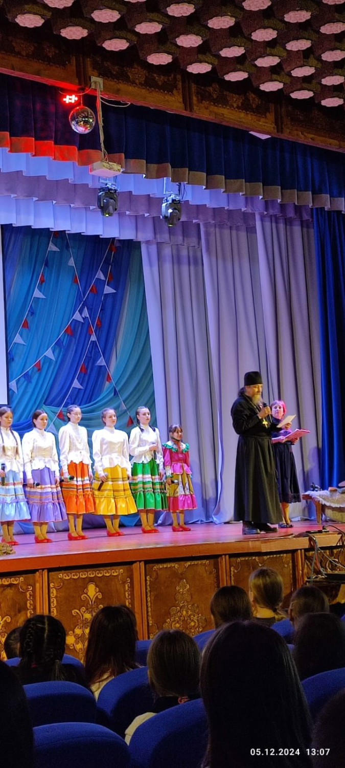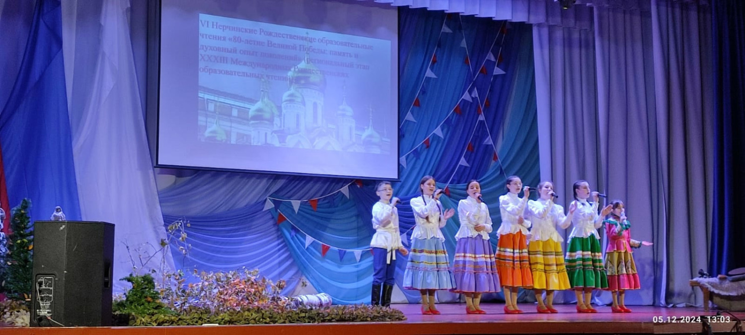5 декабря 2024 года, по благословению епископа Нерчинского и Краснокаменского Макария, рамках VI Нерчинских Рождественских образовательных чтений «80-летие Великой Победы: память и духовный опыт поколений» (региональный этап XXХIII Международных Рождественских образовательных чтений) на базе городского ДК в посёлке Первомайский Шилкинского района состоялись Литературно-краеведческие чтения «Слово доблести и чести»: инсценированное прочтение художественного произведения о Великой Отечественной войне. Открыл мероприятие детский образцовый фольклорный ансамбль «Прибаутки» (руководитель Антонина Михайловна Латышева) Детской школы искусств. Затем с приветственными словами к участникам и гостям обратился настоятель храма святого преподобного Амвросия Оптинского иерей Лев Клюев. Также участников чтений приветствовала председатель Совета депутатов гп. Первомайское Архипова Лариса Ильинична. Также она поздравила всех присутствующих с Днём добровольца. Попова Илонна Викторовна (учитель МОУ Первомайской СОШ №5, руководитель Добровольческого центра «Мангуст») представила участникам доклад «О войне написано не все…», в котором был показан вклад посёлка в общее дело нашей Великой Победы. Тогда посёлок назывался рудник Слюдянка. Добываемое на руднике сырье стало стратегическим, так как использовалось в радиотехнике, самолетостроении и других оборонных направлениях. Во время выступления присутствующие с неподдельным интересом смотрели на представленные в видеоряде фотографии военных лет из архивов наших земляков. Затем ребята из Добровольческого центра «Мангуст» подарили зрителям спектакль «А зори здесь тихие…» по одноимённой повести Бориса Львовича Васильева. Актёры ещё малы по возрасту, но играли они достойно. У многих из них отцы сейчас на СВО. Спектакль затронул сердца зрителей. Финальной точкой в столь важном мероприятии была любимая всеми песня «Гляжу в озёра тихие» в исполнении Шишкиной Сони. Ко дню мероприятия был проведен сбор подарков на фронт участникам СВО. Посылки были отправлены сразу после проведения чтений. ©Нерчинская епархия