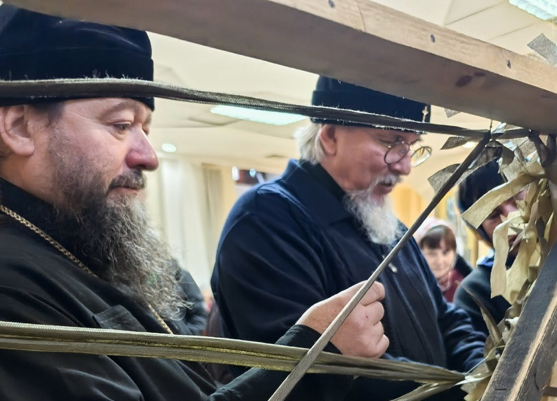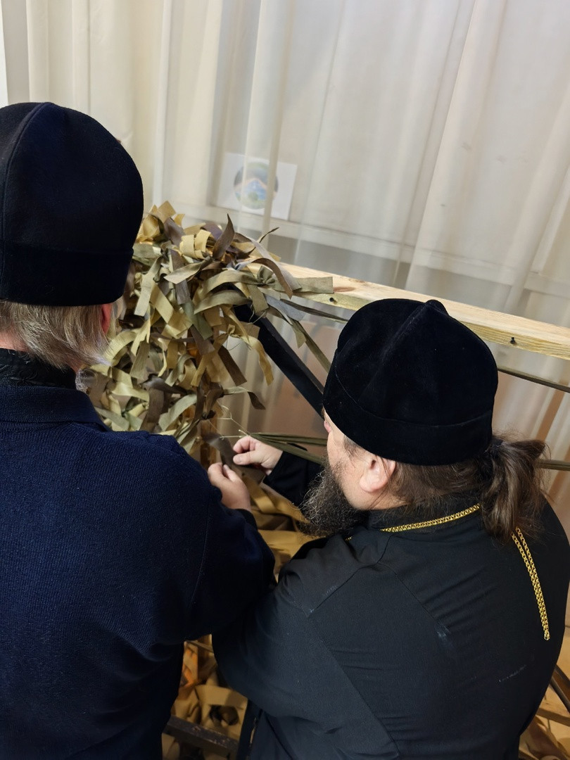Митрополит Димитрий и епископ Макарий приняли участие в плетении маскировочных сетей