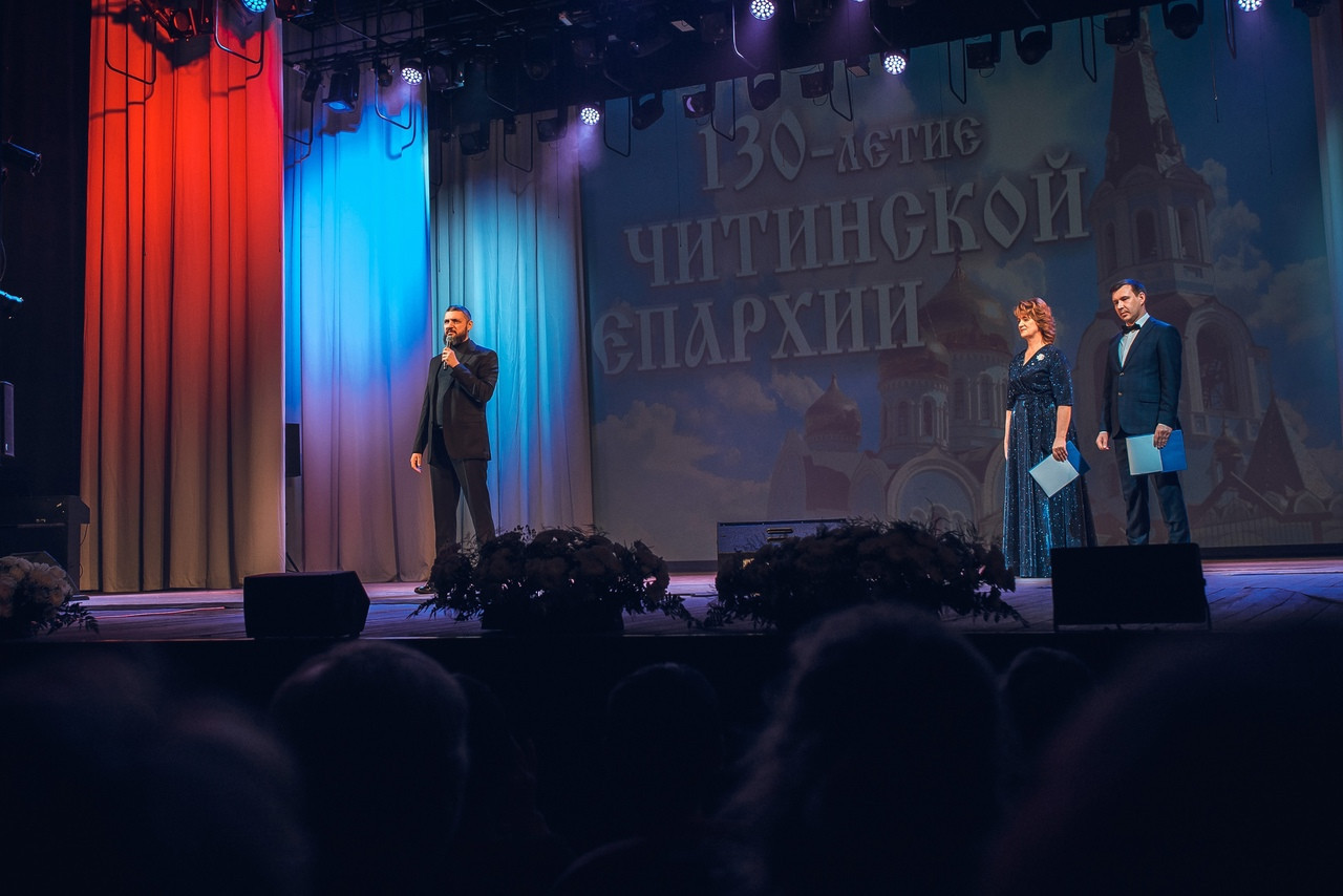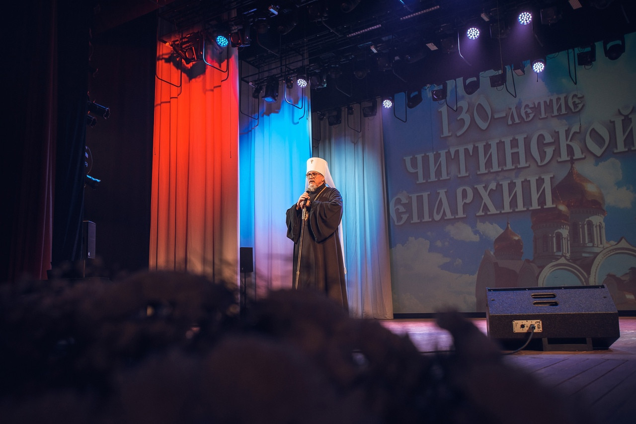 12 марта 2024 года в Забайкальском краевом драматическом театре состоялся праздничный концерт, посвященный 130-летию со дня образования Забайкальской епархии. Глава Забайкальской митрополии митрополит Читинский и Петровск-Забайкальский Димитрий поздравил собравшихся и отметил особый вклад, который внесли церковно-приходские школы в жизнь общества. Они учили людей любить Родину, семью, близких. И сегодня православная церковь играет большую роль в заботе о мире и единстве, сохранении исторической памяти, ее представители несут особую миссию в зоне проведения специальной военной операции. «Мы, вспоминая историю епархии должны помнить, что наши предки, которые положили много сил для того, чтобы Забайкалье стало тем Забайкальем, которым мы гордимся, мы должны и сами потрудиться, в первую очередь, в сохранении этой памяти и приумножении тех подвигов, которые совершали наши благочестивые предки» — сказал митрополит Димитрий. С праздником забайкальцев поздравил и губернатор Забайкальского края Александр Осипов. «Надеюсь, что каждый вспоминает слова Евангелие и искренне благодарит. У каждого свое поприще и дай Бог, чтобы, делая то, что должно, получили нужное и получили соответствующую оценку. Хорошо, чтобы она звучала: «Сподобиться, удостоиться», — сказал Александр Осипов. В концертной программе принимали участие Государственный «Ансамбль песни и пляски» Забайкальские казаки» с номерами «Степная вольница», «Небо над водой» и «Молитва»(К Богородице прилежно»), а также участвовал Государственный музыкальный театр национальных культур «Забайкальские узоры», Фольклорный ансамбль «Читинская Слобода» и другие творческие коллективы Забайкалья.. Организаторы концерта познакомили зрителей с историей Забайкальской епархии, подготовив серию видеороликов. На втором этаже драматического театра Читинской епархией была представлена выставка, на которой более 50 картин и фотографий рассказывают о жизни православной церкви в Забайкалье. Впервые публике были представлены архивные церковные документы. ©Нерчинская епархия