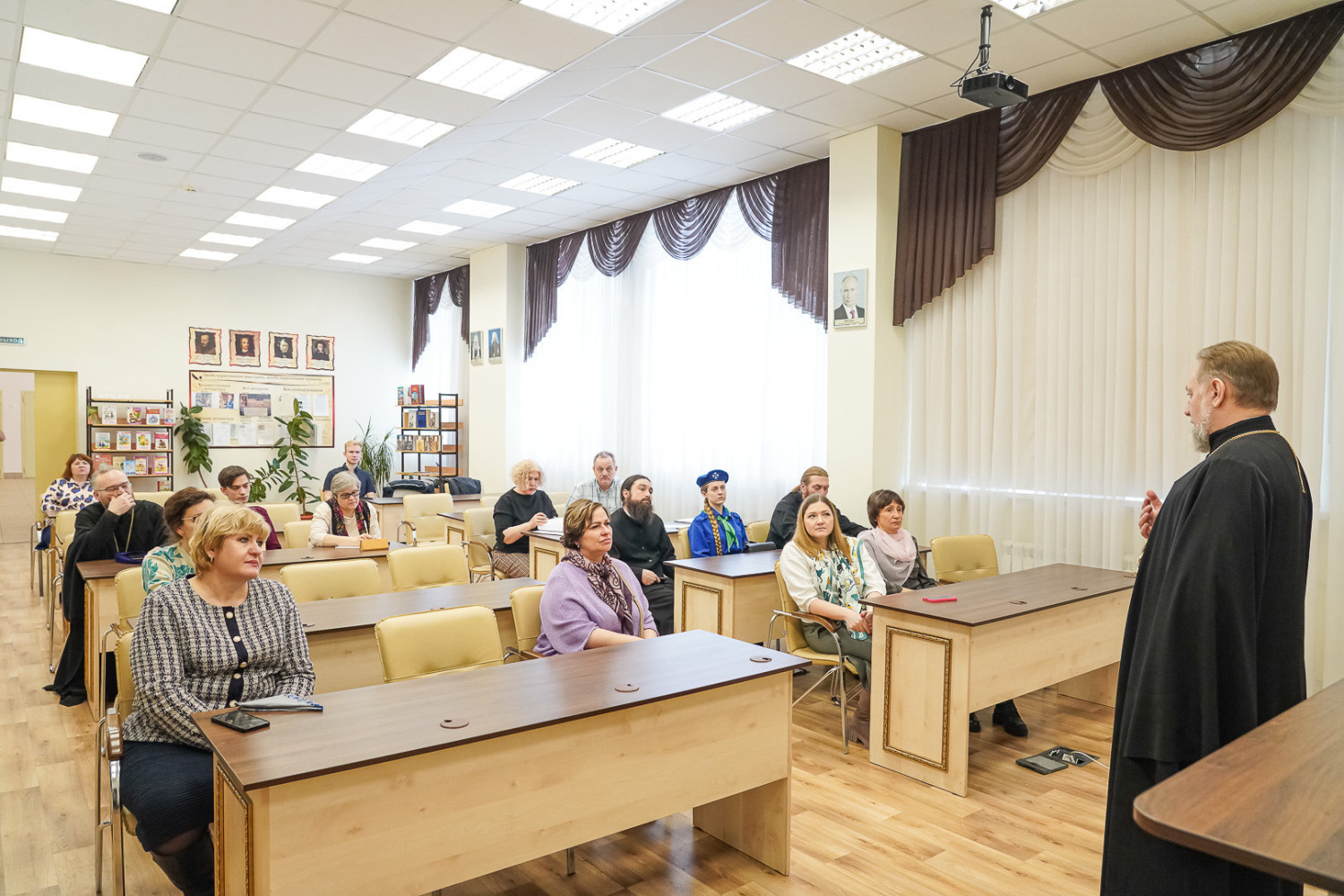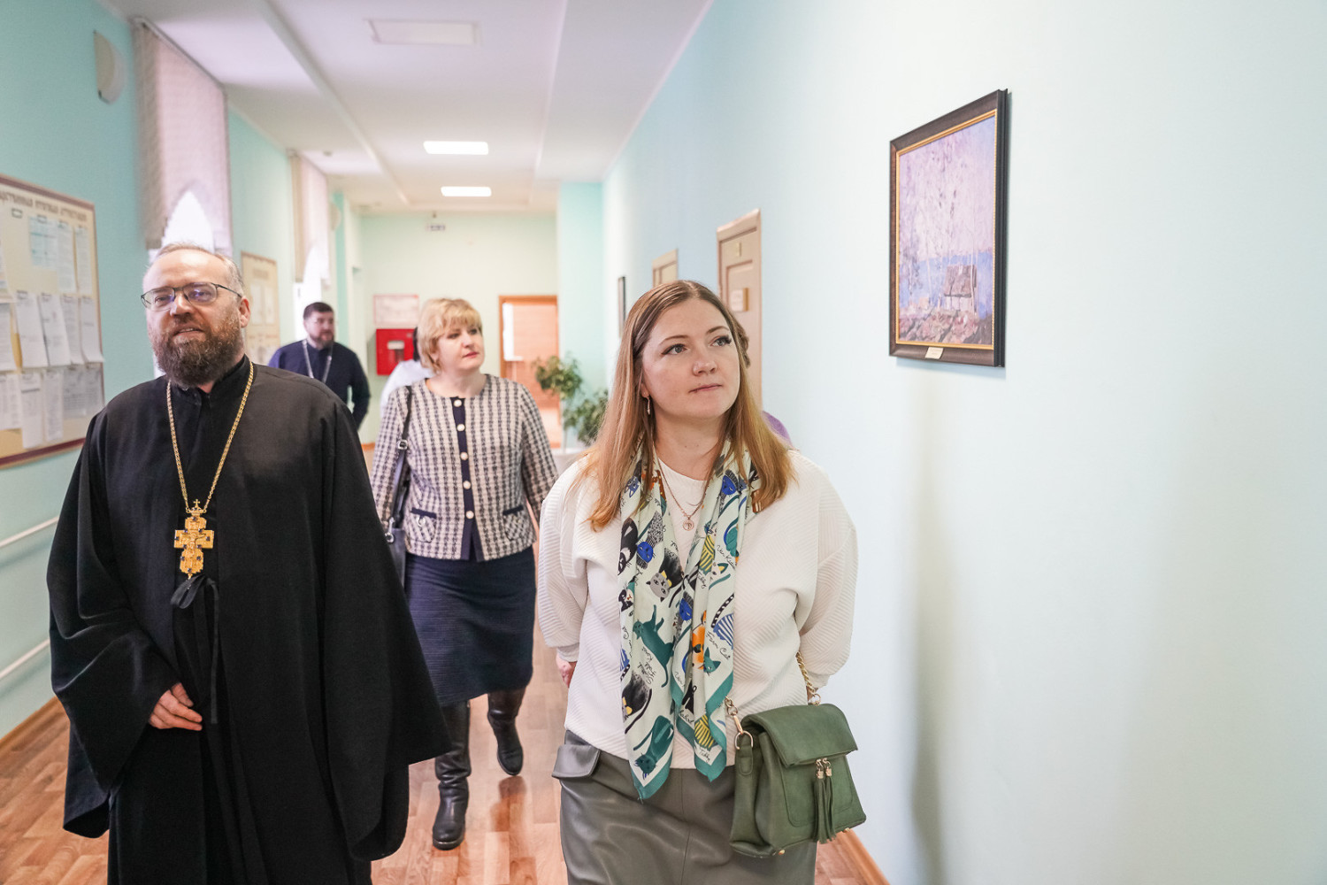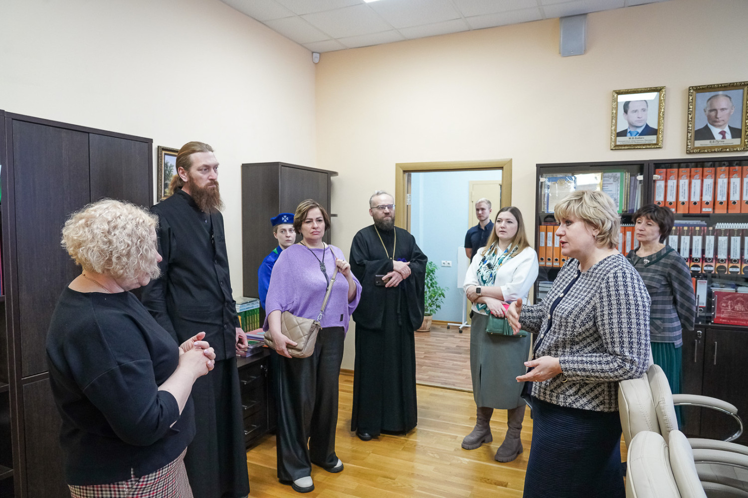 29 января 2024 года в Нижнем Новгороде продолжилась начавшаяся накануне в Дивееве и Арзамасе программа визита в Нижегородскую епархию делегации Забайкальской митрополии. В состав делегации входят митрополит Читинский и Петровск-Забайкальский Димитрий, руководитель отдела религиозного образования и катехизации Нерчинской епархии протоиерей Андрей Кисов, руководитель отдела по делам молодежи Читинской епархии иерей Валерий Шаферов, руководитель миссионерского отдела Читинской епархии иерей Антоний Горбунов, заведующая канцелярией Читинского епархиального управления Татьяна Бабушкина, исполняющая обязанности министра образования Забайкальского края Марина Секержитская, декан факультета основного, среднего общего образования Института развития образования края Елена Дробная, старший преподаватель этого института Любовь Горюнова, главный специалист комитета образования администрации городского округа Чита Олеся Гурьева и директор читинской школы №55 Галина Перунова. В Нижнем Новгороде гостей сопровождал руководитель отдела образования и катехизации Нижегородской епархии протоиерей Евгений Худин. Утром члены делегации посетили православную гимназии в честь святого благоверного князя Александра Невского. Там они осмотрели учебные классы и другие помещения и побеседовали с преподавателями и учащимися. Затем забайкальцы побывали в Нижегородском епархиальном управлении, где ознакомились с работой канцелярии и отдела образования и катехизации. В городском ресурсном центре духовно-нравственного воспитания и гражданского образования имени святых равноапостольных Кирилла и Мефодия, действующем на базе школы №187, прошла встреча делегации с директором этого учебного заведения Валерием Малининым и руководителем департамента образования администрации Нижнего Новгорода Владимиром Радченко. В министерстве образования и науки Нижегородской области состоялась беседа гостей с его главой Михаилом Пучковым. Вечером для делегации была проведена экскурсия по кремлю. Забайкальцы побывали в Михаило-Архангельском соборе и других кремлевских храмах, а также на возрожденной колокольне утраченного Спасо-Преображенского кафедрального собора. Кроме того, митрополит Димитрий посетил просветительский центр «Логос», где ознакомился с работой объединенной редакции средств массовой информации Нижегородской митрополии и ответил на вопросы журналистов радио «Образ». Программа визита продолжится в Воскресенском благочинии Нижегородской епархии. Планируется участие гостей в Божественной литургии в соборе в честь Воскресения Христова и посещение православной гимназии имени преподобного Серафима Саровского, которая в этот день отпразднует свое 20-летие. Использованы материалы сайта Нижегородской епархии https://nne.ru/
