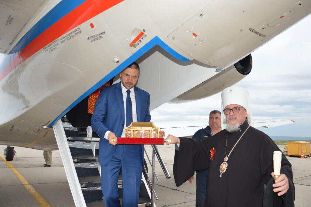 С мая по сентябрь 2023 года по благословению Святейшего Патриарха Московского и всея Руси Кирилла в 100 городах России проходит Всероссийский молебен о Победе. Мощи Небесного покровителя Русского воинства великомученика Георгия Победоносца, веками приносящие многочисленные чудеса и величайшие победы, посетят 89 регионов нашей страны, чтобы каждый смог попросить помощи у этого великого святого. Вечером 3 июля в 20:20 ковчег с мощами великомученика Георгия Победоносца прибыл в Читу. В читинском аэропорту святыню встретили митрополит Читинский и Петровск-Забайкальский Димитрий и губернатор Забайкалья Александр Осипов, духовенство Читинской епархии. Также в аэропорту святыню встречали оркестр и рота почетного караула. Из читинского аэропорта ковчег с мощами был доставлен в кафедральный собор Казанской иконы Божией Матери.
