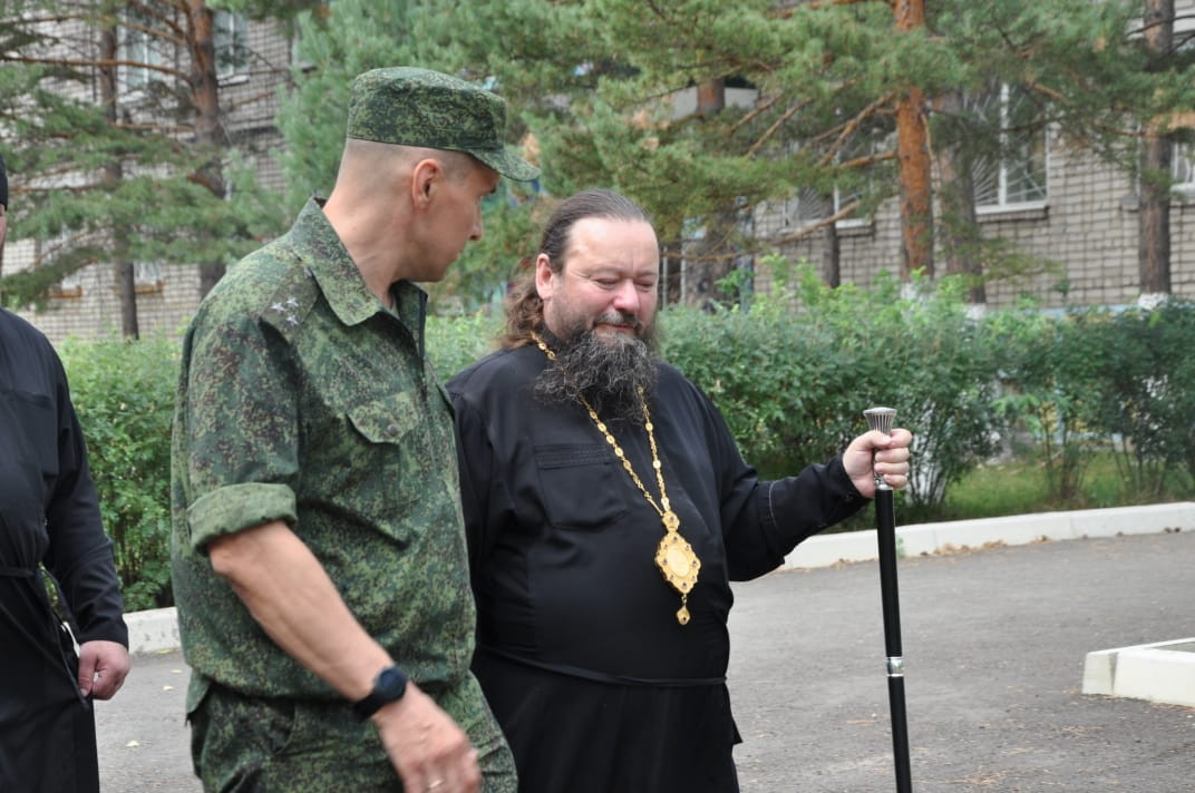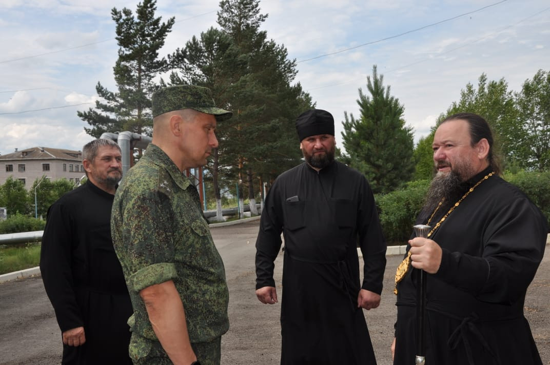 27 июля 2024 года епископ Нерчинский и Краснокаменский Макарий посетил сретенский пограничный отряд Пограничного управления ФСБ России по Забайкальскому краю расположенный в поселке Кокуй Сретенского района. По приглашению заместителя командира отряда, полковника Романа Валерьевича Трофимова, Владыка Макарий принял участие в торжественном митинге, посвященном отправке военнослужащих пограничного отряда для участия в специальной военной операции. Епископ Макарий совершил молебен о благополучии военнослужащих, об их защите от врагов и о скорейшем возвращении домой. В своем напутственном слове Владыка обратился к бойцам, подчеркнув важность их службы для Отечества, их мужество и самоотверженность. Он также напомнил им о важности веры, надежды и любви, которые должны стать их невидимым щитом в минуты опасности. Под звуки торжественного марша «Прощание славянки» епископ Макарий окропил всех святой водой и подарил каждому воину маленькую иконку – напоминание о Божьей помощи и защите. Во время визита в пограничный отряд епископ Макарий имел возможность пообщаться с военнослужащими, узнать о их службе и бытовых условиях. Необходимо отметить, что Русская Православная Церковь всегда поддерживала своих воинов и архипастырский визит епископа Макария является символом нерушимой связи между Церковью и защитниками Отечества, подтверждением важности духовной поддержки в любые моменты жизни. На протяжении всей истории России священнослужители неизменно оказывали моральную и духовную помощь воинам, особенно во времена тяжелых испытаний. Посещение владыкой Макарием пограничного отряда – это не просто формальный акт, а яркое проявление глубокой пастырской заботы о военнослужащих. ©Нерчинская епархия