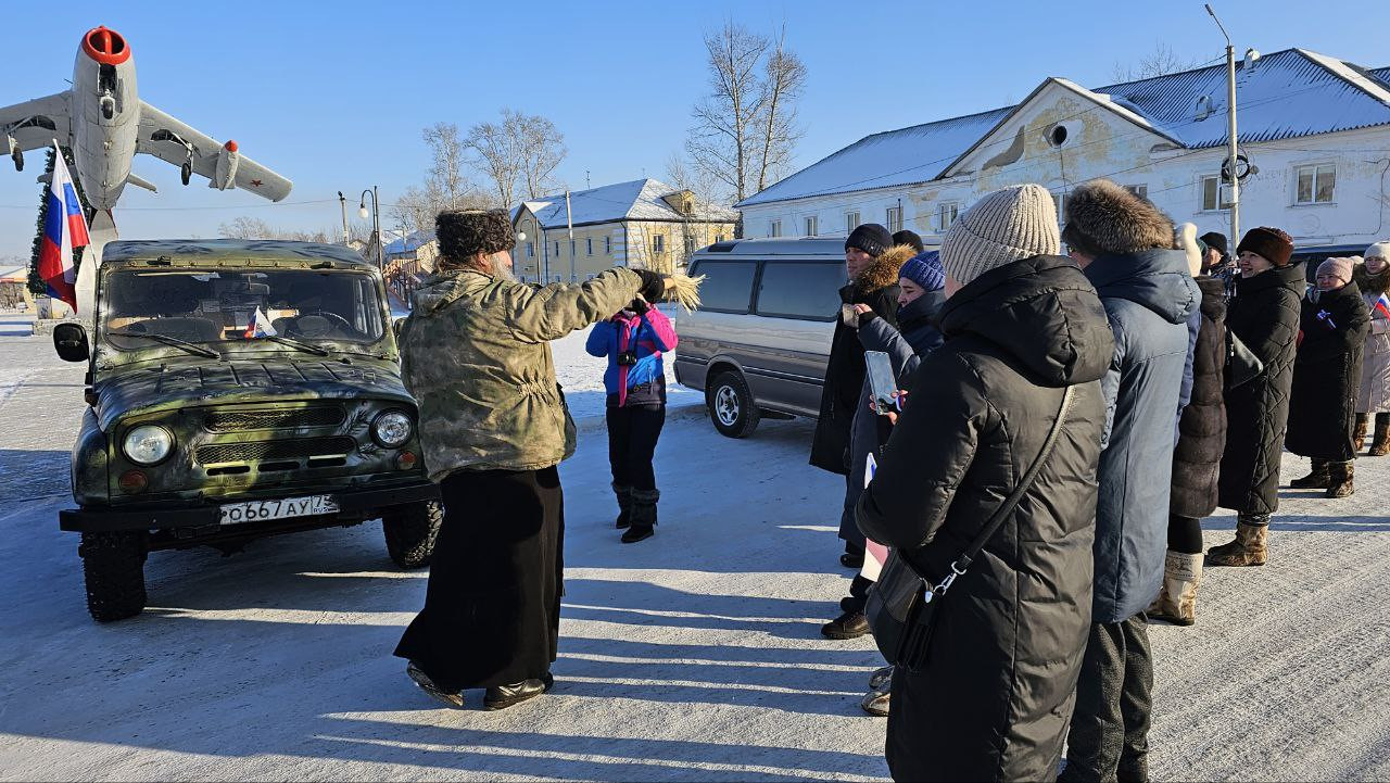 19 января 2024 года настоятель храма святых первоверховных апостолов Петра и Павла г. Шилка протоиерей Александр Тылькевич принял участие в митинге посвященном поддержке участников СВО. В митинге приняли участие руководитель администрации города Шилка, председатель совета предпринимателей, учащиеся школ и юнармейцы Шилкинского района. Жители Шилки отремонтировали и собрали для своих земляков-воинов на СВО автомобиль УАЗ. Священнослужитель освятил автомобиль и окропил участников мероприятия святой водой. Отец Александр обратился к участникам митинга с приветственным словом и обратил внимание на то, что российским военнослужащим очень важна поддержка соотечественников. Священник также отметил, что прихожане храма Петра и Павла г. Шилка в ближайшее время отправят на СВО для наших подразделений еще два автомобиля. ©Нерчинская епархия