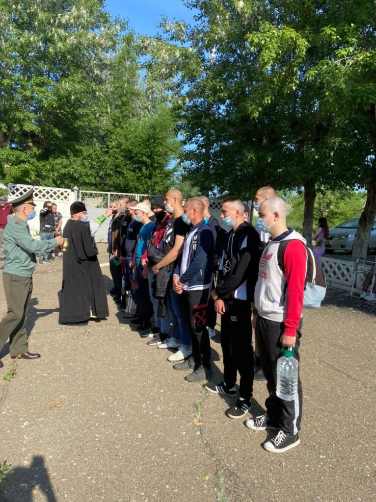 27 июня 2021 года игумен Симеон (Зимняков) благословлял будущих защитников Отечества из Краснокаменского и Забайкальского районов на ратный подвиг во благо Отечества. Батюшка, окропив призывников святой водой, прочитал молитву на начало воинской службы и обратился к ним со словами напутствия. Так же священнослужитель обратился к родным и близким будущих солдат, сказал о важности родительского благословения и поддержке друзей и подруг. Такие мероприятия стали хорошей традицией во взаимоотношениях между Нерчинской епархией и военным комиссариатом в Краснокаменске. ©Нерчинская епархия