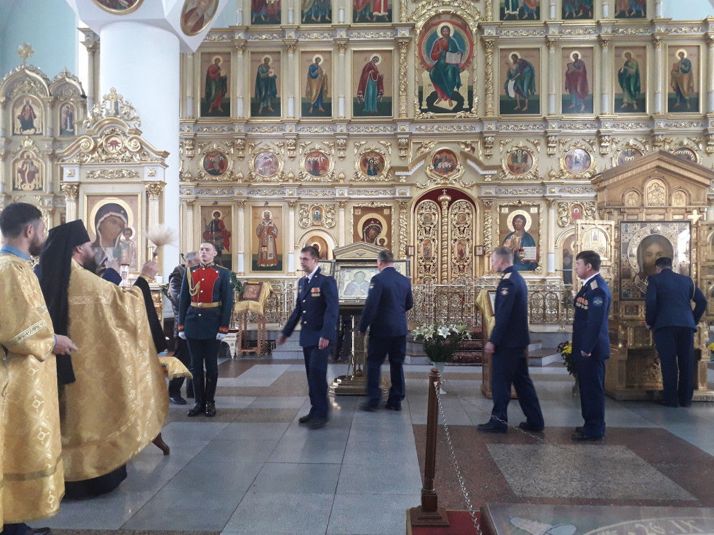 В Читу прибыла икона пророка Божия Илии. Этот образ пророка является главной иконой Воздушно-десантных войск и Воздушно-космических сил России. Поздним вечером 18 октября 2019 года заместитель епархиального отдела по взаимодействию с вооруженными силами и правоохранительными органами Читинской епархии иерей Кирилл Трунов встретил икону в аэропорту и сопроводил ее в Казанский кафедральный собор г.Читы. Икона пророка Божия Илии— покровителя ВДВ и ВКС была освящена 30 июля 2019 года в храме Благовещения Пресвятой Богородицы в Сокольниках. Начиная с августа-сентября 2019 года образ доставляется в храмы России, где ему поклоняются военнослужащие, члены их семей и все желающие. После возвращения в Москву в апреле 2020 г. накануне 75-й годовщины Великой Победы она займет свое место в главном храме Вооруженных сил в парке «Патриот». 19 октября 2019 года в Чите иеромонах Александр (Михайлов), председатель епархиального отдела Читинской епархии по взаимодействию с вооруженными силами и правоохранительными совершил торжественный молебен перед иконой пророка Божьего Илии. Главная икона Воздушно-космических сил Российской Федерации и Воздушно-десантных войск пробудет в Чите до 30 октября. Напомним, что в Читинском кафедральном соборе сейчас также находятся икона «Спас Нерукотворный» Главного храма Вооруженных Сил Российской Федерации и ковчег с мощами святых покровителей российского воинства. В рамках пребывания икон в столице Забайкальского края все желающие смогут поклониться православным святыням. Всего за несколько дней икону «Спас Нерукотворный» посетили более 5 тысяч человек.