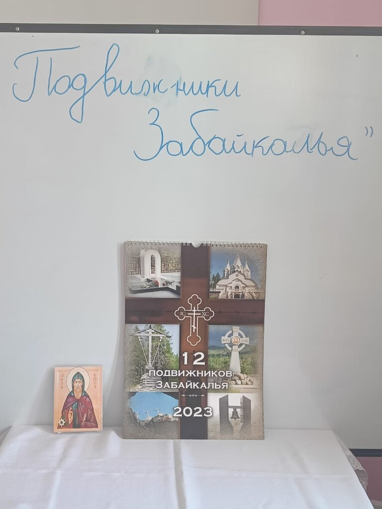 12 февраля 2023 года в воскресной школе храма Вознесения Господня в пгт. Забайкальск прошел урок «Подвижники Забайкалья». На уроке преподаватель воскресной школы Максим Чуданов рассказал детям о подвижниках веры и благочестия земли Забайкальской. В качестве наглядного пособия был использован календарь на 2023 год «12 подвижников Забайкалья» изданный по благословению Высокопреосвященнейшего Димитрия, митрополита Читинского и Петровск-Забайкальского. ©Нерчинская епархия