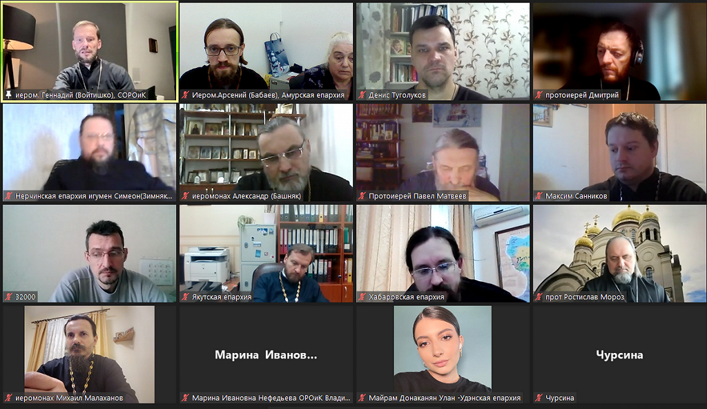 28 декабря 2022 года по благословению председателя Синодального отдела религиозного образования и катехизации (ОРОиК) митрополита Екатеринбургского и Верхотурского Евгения в дистанционном формате состоялось совещание с руководителями профильных отделов епархий, расположенных на территории Дальневосточного федерального округа. Темой совещания стала организация епархиальной системы педагогического сопровождения детей и взрослых в приходах. Со стороны Синодального отдела мероприятие возглавил руководитель сектора приходского просвещения Синодального ОРОиК иеромонах Геннадий (Войтишко). В ходе мероприятия представители епархий представили сообщения о ситуации в области приходского просвещения с акцентом на том, какие изменения произошли за последний год, с какими сложностями приходилось сталкиваться и какие проблемы удалось решить. Иеромонах Геннадий обратил внимание как на ключевые положения документа «Основы педагогического сопровождения детей и взрослых в системе приходского просвещения», которые озвучивались в ходе предыдущих совещаний, так и на практические аспекты приходской работы. В частности, говоря об особенностях и проблемах приобщения детей к жизни Церкви, он подчеркнул, что организация наставления в вере в виде кальки с общеобразовательной школы на основе урочной системы, с учебниками, экзаменами (с точки зрения задач приходского просвещения) является ненормальной приходской практикой, которая отбивает у ребенка интерес к приходским занятиям и в целом – к храму. По словам отца Геннадия, при работе с детьми ошибочно действовать в отрыве от просвещения семьи, потому что дети входят в приходскую общину в составе своих собственных семей, где родители являются для ребенка значимыми взрослыми. Представитель Синодального отдела подчеркнул, что при этом важно, чтобы у священнослужителя было понимание о педагогических подходах по взаимодействию с ребенком. В рамках совещания активно обсуждалась основная проблема большинства епархий Дальнего Востока — недостаток священнослужителей и приходских специалистов-мирян в ряде приходов, особенно расположенных в удаленных местностях. По информации епархий, для консолидации усилий создаются крупные епархиальные духовно-просветительские центры, обладающие серьезными ресурсами, в том числе, для просветительского служения: оглашения, богословских курсов для постоянных прихожан, организациИ молодежного, социального служения и др. Вместе с тем представитель Синодального отдела указал на важность развития жизни непосредственно приходских общин. В целом участники совещания сошлись в том, что необходимо повышать квалификацию духовенства и активных мирян. *** В совещании 28 декабря 2022 года приняли участие 16 епархий, расположенных на территории Дальневосточного федерального округа. Читинскую епархию представил председатель Отдела религиозного образования и катехизации протоиерей Павел Матвеев. От Нерчинской епархии участвовали секретарь Нерчинской епархии игумен Симеон (Зимняков) и директор воскресной школы Спасского прихода г. Краснокаменска Алявдина Татьяна Геннадьевна. Начиная с 2020 года Синодальным ОРОиК проводится серия встреч с руководителями и сотрудниками епархиальных ОРОИК, в рамках которых обсуждаются актуальные вопросы педагогическ