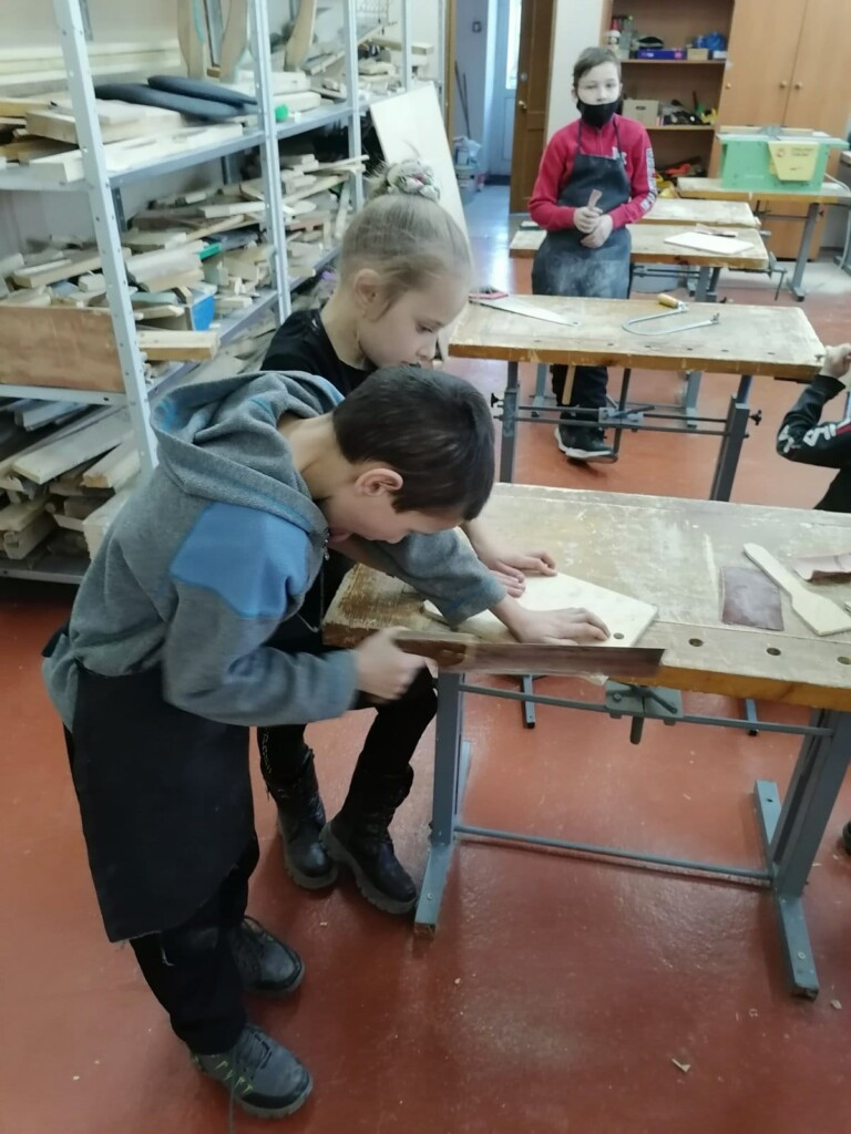 Дети воскресной школы Свято-Никольского храма пгт. Агинское занимаются столярным делом под руководством преподавателя Шемякина Сергея Викторовича. Возможность заниматься предоставлена Домом детского творчества им. И. Д. Кобзона. Дети занимаются в оборудованном кабинете, используя инструменты, приобретенные на средства Президентского гранта. Занятия проходят интересно, дети изготавливают домашнюю утварь для кухни: разделочные доски, лопатки и т. п. Приступают, по просьбе родителей, к изготовлению полочек для икон. ©Нерчинская епархия