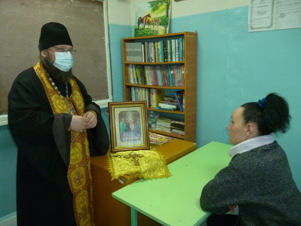 3 февраля 2022 года секретарь Нерчинской епархии игумен Симеон (Зимняков) посетил в ФКУ СИЗО-2 «Следственный изолятор №2» г. Краснокаменска. Батюшка рассказал присутствующим о празднике Сретения Господня, который отмечается Русской Православной Церковью 15 февраля, а также в ходе духовной беседы ответил на вопросы присутствующих о душе, о прощении и искуплении грехов, о Таинстве Крещения. Как отметили сотрудники учреждения – отец Симеон частый гость в СИЗО-2 и принимает активное участие в мероприятиях по духовному окормлению находящихся здесь обвиняемых и подозреваемых в совершении преступлений лиц. ©Нерчинская епархия