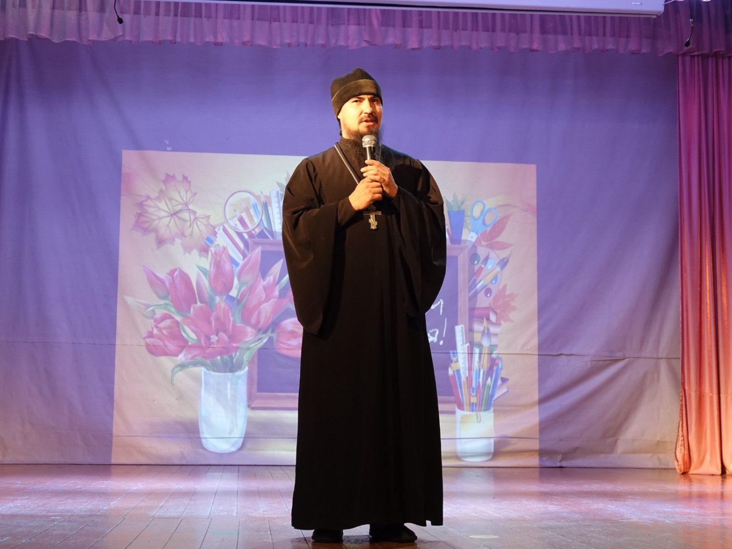 В начале октября 2024 года, по благословению епископа Нерчинского и Краснокаменского Макария, клирик храма Воскресения Христова иерей Роман Пичуев г. Нерчинска принял участие в торжественно-поздравительной программе ко Дню учителя. Праздничная программа, прошедшая в стенах Нерчинского межпоселенческого районного культурно-досугового центра, была насыщена яркими выступлениями и теплыми поздравлениями. Священнослужитель выступил со словом поздравления от лица епископа Макария, в котором была подчеркнута особая значимость труда педагогов в деле воспитания подрастающего поколения, отметив не только передачу знаний, но и формирование нравственных качеств, духовного и интеллектуального развития детей. Он пожелал учителям крепкого здоровья, неиссякаемого терпения, душевного мира и благополучия, напомнив о важной роли учителя как духовного наставника для своих учеников. На сцену со словами поздравлений также пригласили главу муниципального района «Нерчинский район» Сергея Александровича Комогорцева и руководителя Управления образования МР «Нерчинский район» Наталью Валерьевну Ораеву. День учителя в Нерчинске стал ярким событием, подчеркнувшим важность и значимость профессии педагога. Организаторы мероприятия приложили максимум усилий, чтобы создать незабываемый праздник для всех участников. ©Нерчинская епархия