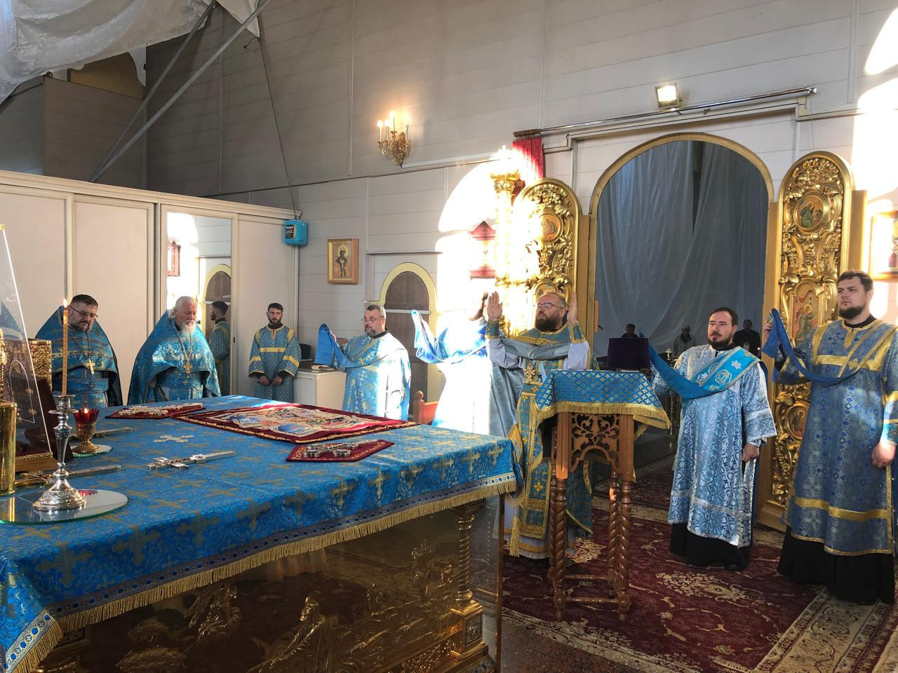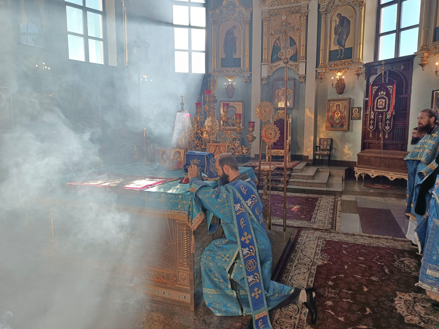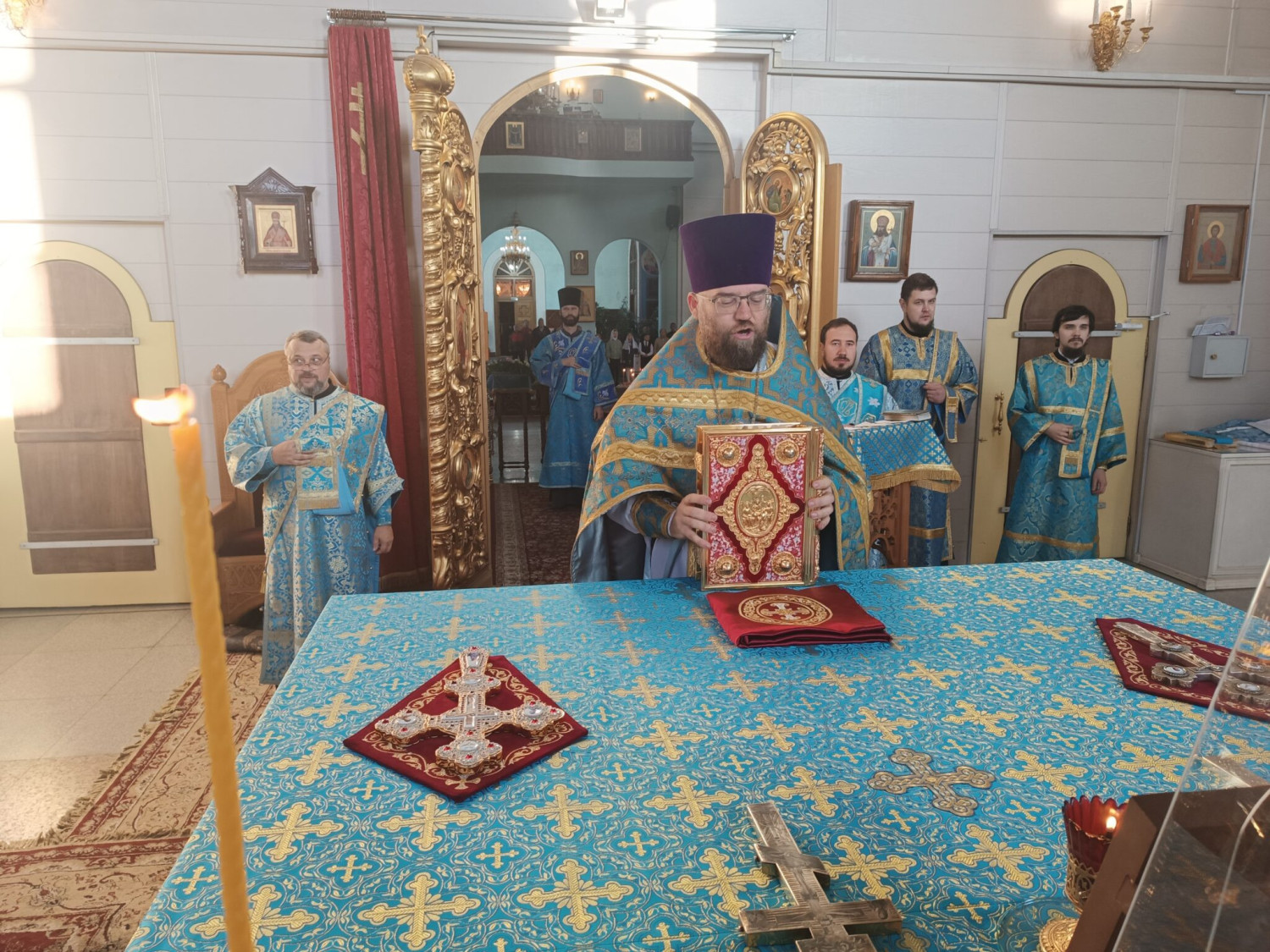 5 сентября 2023 года, в день отдания праздника Успения Пресвятой Богородицы и день памяти священномученика Ефрема, епископа Селенгинского, настоятель храма Рождества Пресвятой Богородицы пгт. Чернышевск протоиерей Андрей Кисов (Нерчинская епархия) в сослужении духовенства Читинской и Нерчинской епархий совершил Божественную литургию в кафедральном соборе Казанской иконы Божией Матери города Читы. Диаконский чин: иеродиакон Иннокентий (Федоров), диакон Михаил Воробьев, диакон Андрей Окладников, диакон Илия Хасанов, диакон Дионисий Донской, диакон Дионисий Миронов. За богослужением молились: настоятельница женского монастыря Всех святых, в земле Российской просиявших, пгт Атамановка Читинского района игумения Ольга (Василькова) с сестрами обители, насельники мужского Свято-Успенского монастыря г. Читы, воспитанники Забайкальской православной гимназии имени святителя Иннокентия, епископа Иркутского. Богослужебные песнопения исполнил хор Казанского кафедрального собора г. Читы. По благословению Святейшего Патриарха Московского и всея Руси Кирилла на сугубой ектении были вознесены особые прошения и молитва о Святой Руси. По окончании Литургии было совершено славление пред иконами Успения Пресвятой Богородицы и священномученика Ефрема, епископа Селенгинского. Священномученик Ефрем Селенгинский был одним из тех ревностных и преданных служителей Русской Церкви, кто одним из первых принял на себя удар тяжелых гонений, воздвигнутых против Православия. Он родился в 1876 году в семье забайкальских казаков. 23 августа (5 сентября) 1918 года Владыка Ефрем был расстрелян на Ходынском поле. Смерть за Христа он принял спокойно. Перед расстрелом благословил соузников, вместе с ним приведенных на казнь. ©Нерчинская епархия