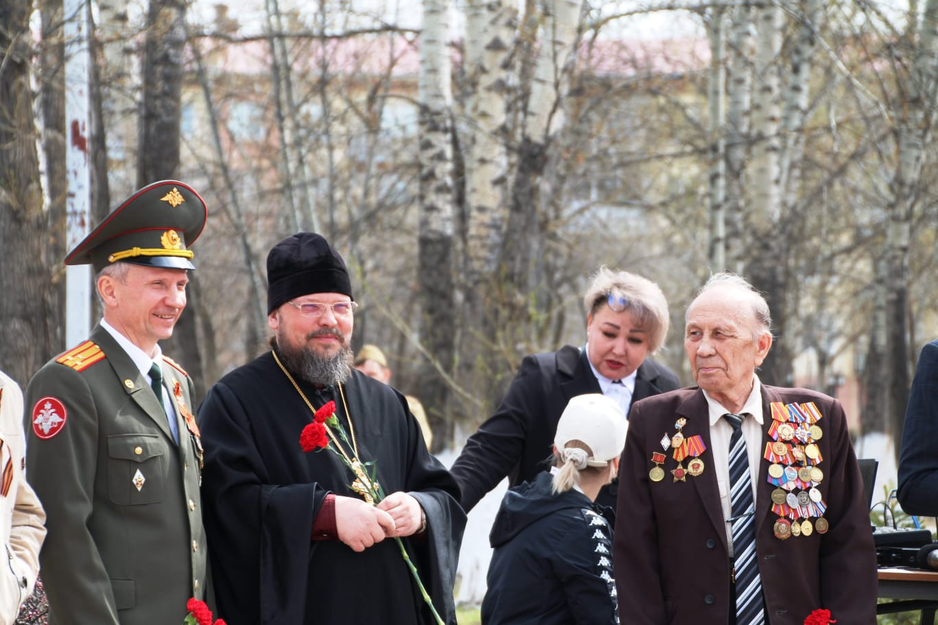 9 мая 2024 года в г. Краснокаменск состоялся торжественный митинг в честь 79-й годовщины Победы в Великой Отечественной войне 1941-1945 годов. Митинг прошел у памятника героям-забайкальцам, погибшим в годы Великой Отечественной войны. Секретарь Нерчинской епархии игумен Симеон (Зимняков) поздравил участников митинга с Днём Победы и возложил цветы к памятнику. ©Нерчинская епархия