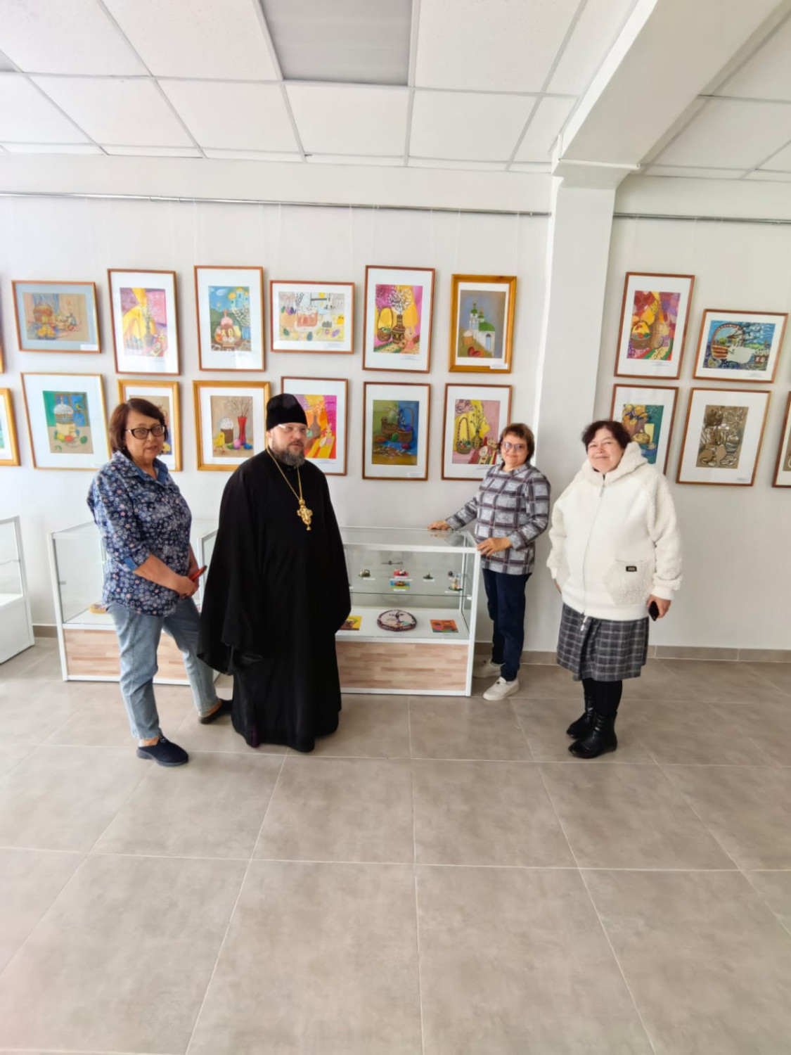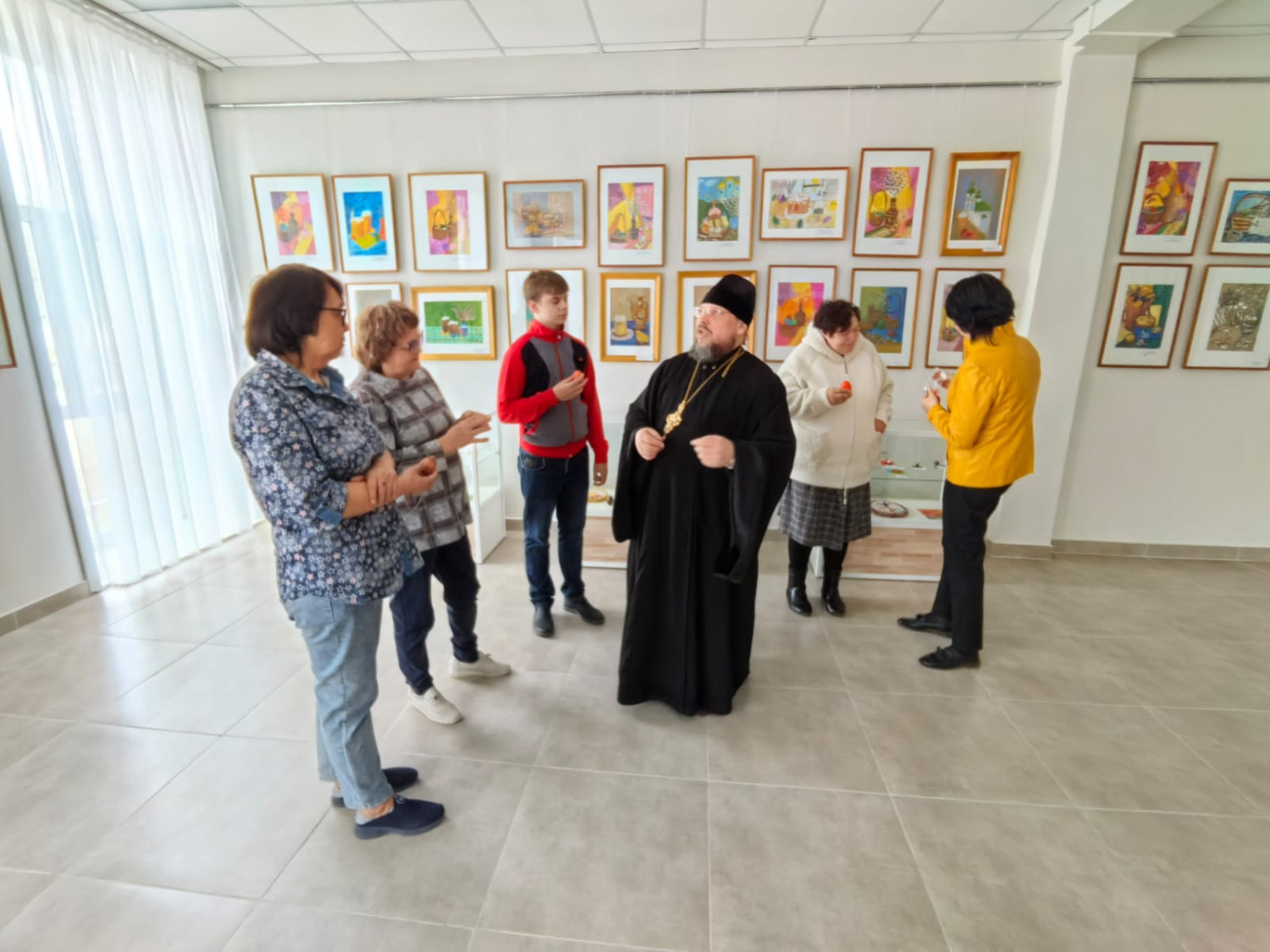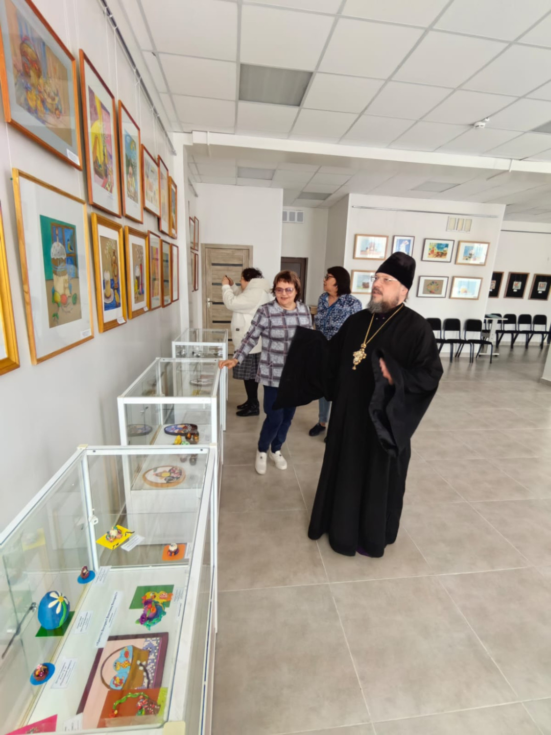 Священнослужитель посетил выставку «Пасхальный фестиваль» в детской художественной школе в Краснокаменске
