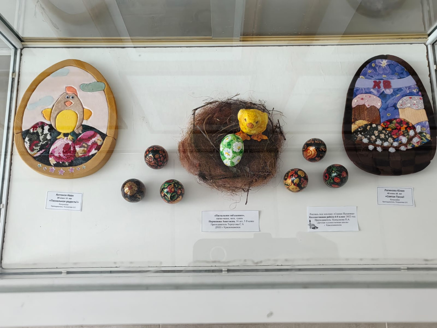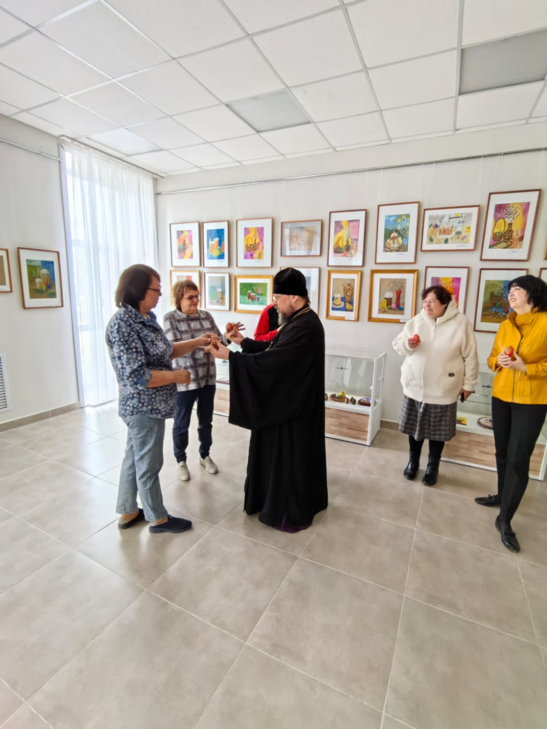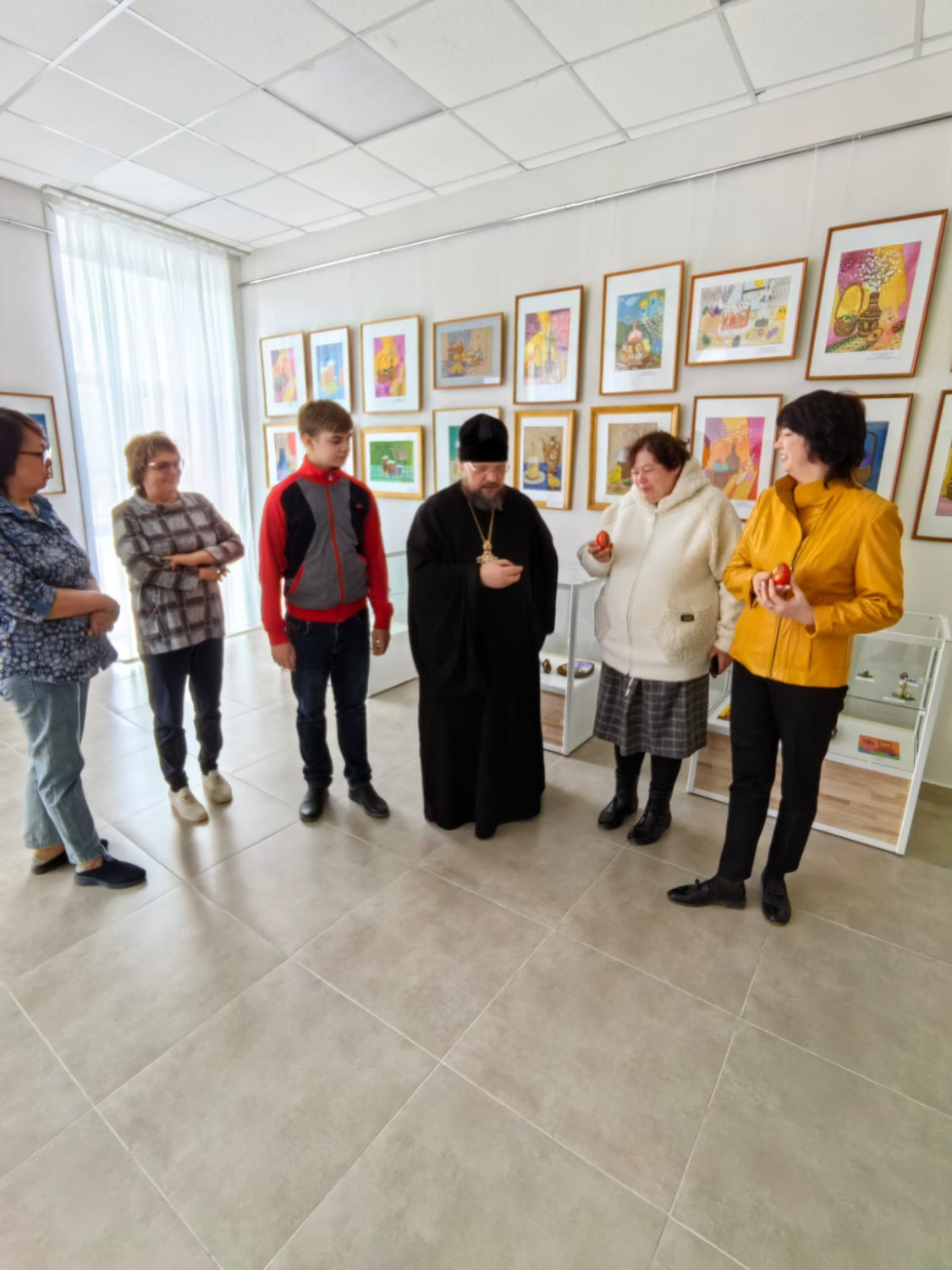 Священнослужитель посетил выставку «Пасхальный фестиваль» в детской художественной школе в Краснокаменске
