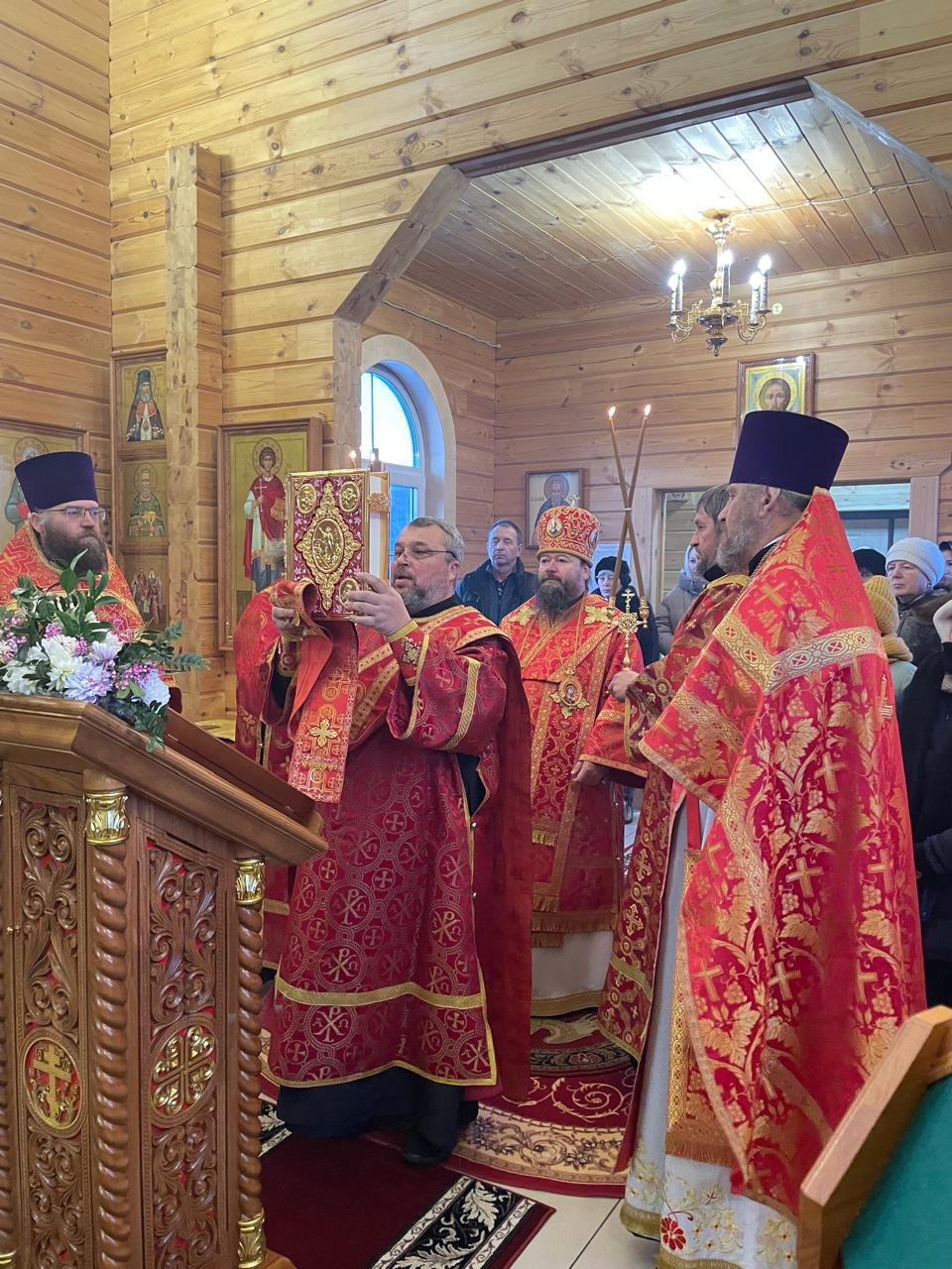 17 декабря 2024 года, в праздник великомученицы Варвары Илиопольской, епископ Нерчинский и Краснокаменский Макарий, совершил Божественную литургию в храме великомученицы Варвары Илиопольской в пгт. Давенда Могочинского района. Перед началом богослужения прихожане храма приветствовали епископа Макария и преподнесли владыке хлеб-соль и букет цветов. Его Преосвященству сослужили: благочинный Чернышевского церковного округа, настоятель храма Рождества Пресвятой Богородицы пгт. Чернышевск протоиерей Андрей Кисов, настоятель храма великомученицы Варвары Илиопольской пгт. Давенда Могочинского района протоиерей Михаил Тарасюк, клирик кафедрального собора Воскресения Христова г. Нерчинск иерей Роман Пичуев. Диаконский чин: диакон Андрей Окладников. За богослужением молились: генеральный директор АО «Рудник Александровский» Домрачев Андрей Владимирович, работники АО «Рудник Александровский, а также жители поселка. По благословению Святейшего Патриарха Московского и всея Руси Кирилла на сугубой ектении были вознесены особые прошения и молитва о Святой Руси. По окончании Литургии епископ Макарий возглавил крестный ход вокруг храма и прочитал молитву святой великомученице Варваре. Затем владыка Макарий поздравил прихожан храма с престольным праздником и обратился к молящимся с архипастырским словом. Владыка отметил, что великомученица Варвара является покровительницей горняков, и её память особенно почитается среди работников горнодобывающей отрасли. Он подчеркнул важность молитвы и духовной поддержки, которую необходимо запрашивать у Бога, особенно тем, кто работает в опасных условиях горных предприятий. Епископ отметил, что вера и молитва могут стать опорой в трудные времена, помогая людям находить силы и мужество в своей работе. Также он акцентировал внимание на значении исповеди и причащения как важных таинств, которые помогают укрепить духовную связь с Богом. Владыка призвал всех присутствующих не забывать о необходимости регулярно обращаться к таинствам, чтобы очищать свою душу и получать благодать. Он напомнил, что великомученица Варвара, будучи символом стойкости и веры, всегда готова заступиться за тех, кто искренне обращается к ней в молитве. В завершение своей проповеди владыка Макарий преподнес А.В. Домрачеву икону Господа Иисуса Христа пожелав здоровья, благополучия и Божией помощи в трудах. Также епископ Макарий благословил молящихся и призвал прихожан не забывать о необходимости духовной жизни и поддерживать друг друга в трудные моменты. ©Нерчинская епархия