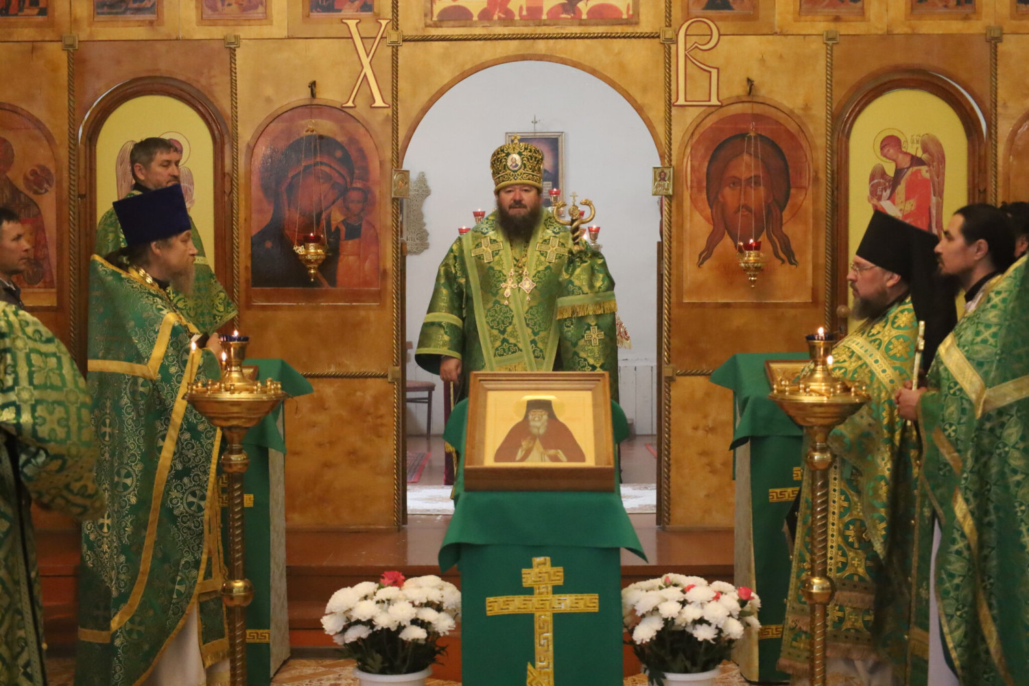 23 октября 2024 года, в день памяти преподобного Амвросия Оптинского (1891), епископ Нерчинский и Краснокаменский Макарий совершил Божественную литургию в храме преподобного Амвросия Оптинского в пгт. Первомайский Шилкинского района. Его Преосвященству сослужили: секретарь Нерчинской епархии игумен Симеон (Зимняков), настоятель храма преподобного Амвросия Оптинского в пгт. Первомайский иерей Лев Клюев, клирик кафедрального собора Воскресения Христова в г. Нерчинск иерей Роман Пичуев. Диаконский чин: диакон Андрей Окладников. Богослужебные песнопения исполнил хор храма преподобного Амвросия Оптинского в пгт. Первомайский. По благословению Святейшего Патриарха Московского и всея Руси Кирилла на сугубой ектении были вознесены особые прошения и молитва о Святой Руси. По окончании Литургии был совершен крестный ход вокруг храма. Затем епископ Макарий обратился к верующим с архипастырским словом и поздравил настоятеля и прихожан с престольным праздником. В своей проповеди владыка Макарий рассказал о жизненном пути преподобного Амвросия Оптинского, о его исключительной мудрости и духовном прозрении, о тысячах людей, которые искали у него совета и утешения. Он особо остановился на терпении, смирении и любви – качествах, которые, по словам святого Амвросия, являются основой для достижения духовного совершенства. Обращаясь к прихожанам, владыка подчеркнул важность следовать примеру преподобного Амвросия в повседневной жизни, стремясь к доброте, милосердию и прощению. ©Нерчинская епархия