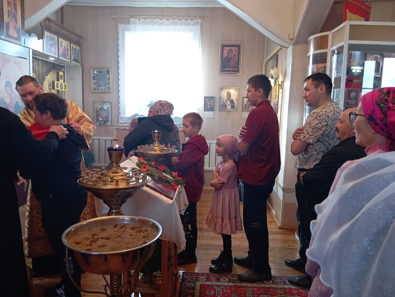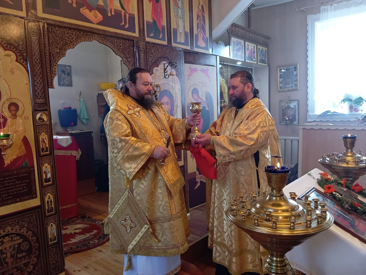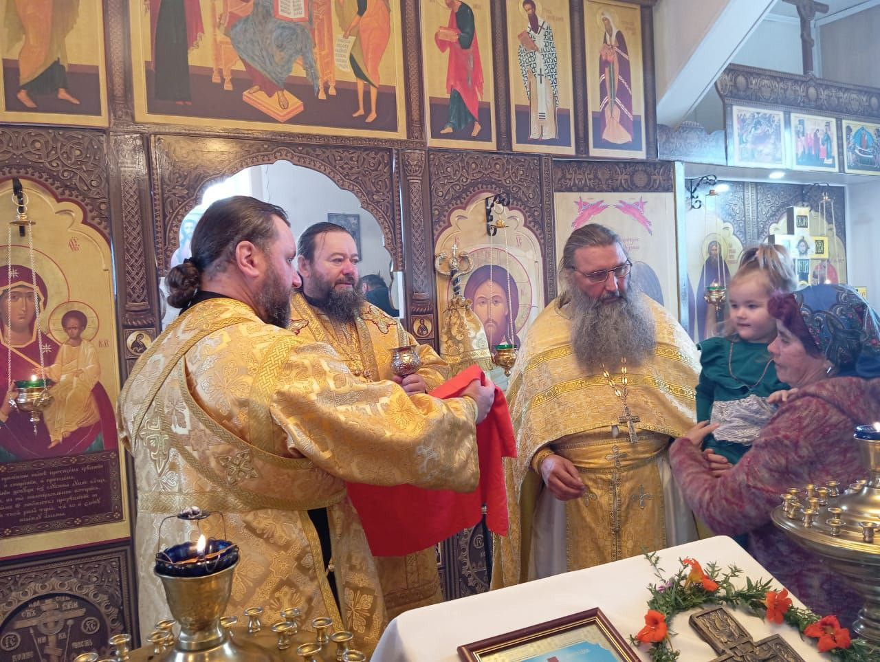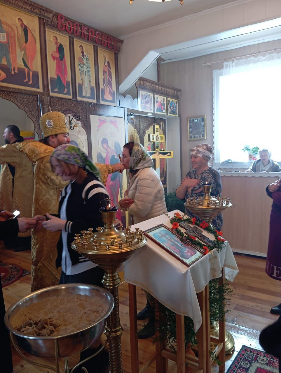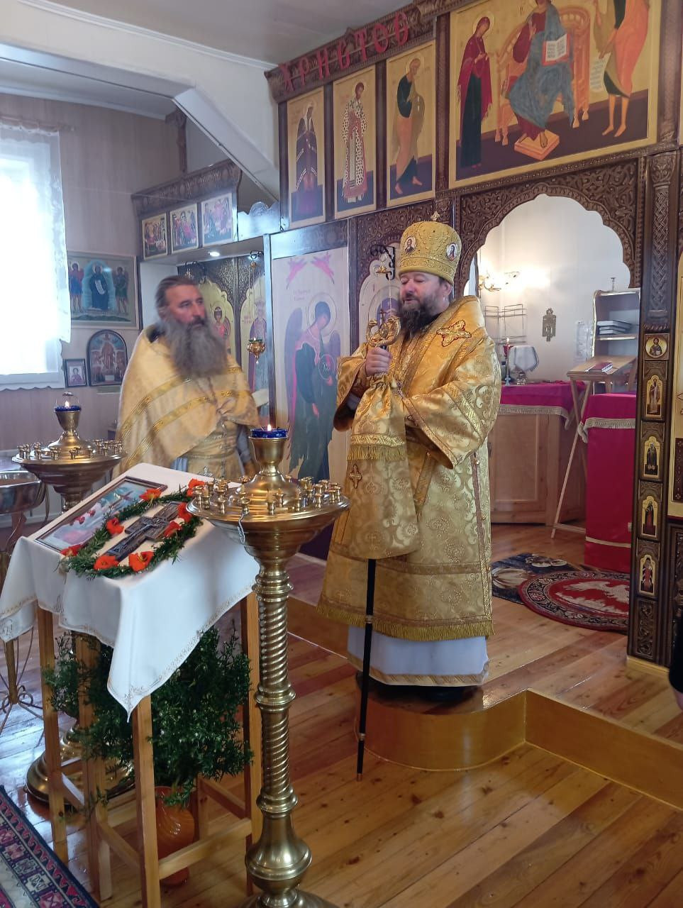 27 сентября 2024 года, в праздник Всемирного Воздвижения Честного и Животворящего Креста Господня, епископ Нерчинский и Краснокаменский Макарий совершили Божественную литургию в храме Воздвижения Креста Господня в селе Тунгокочен. Его Преосвященству сослужил благочинный Нерчинского церковного округа протоиерей Александр Тылькевич. Диаконский чин: иеродиакон Пахомий (Меняйлов). По благословению Святейшего Патриарха Московского и всея Руси Кирилла на сугубой ектении были вознесены особые прошения и молитва о Святой Руси. По окончании Литургии владыка Макарий обратился к молящимся со словом проповеди о празднике Воздвижения Креста Господня, а также о важности несения своего креста в жизни каждого человека. Епископ Макарий подчеркнул, что крест — это символ веры, любви и жертвенности, а его несение — это путь к спасению и духовному совершенствованию. Владыка отметил, что каждый человек в своей жизни встречается c испытаниями, болью, потерями, но именно в них заключена возможность духовного роста и приближения к Богу. Он призвал верующих нести свой крест с достоинством, помня о том, что Христос перенес свои страдания ради людей, и тем самым открыл путь к вечной жизни. Затем в теплой и радушной атмосфере состоялась праздничная трапеза. Прихожане смогли пообщаться с владыкой Макарием лично, задать вопросы, которые тревожили их души, и получить от него мудрые советы и наставления. ©Нерчинская епархия