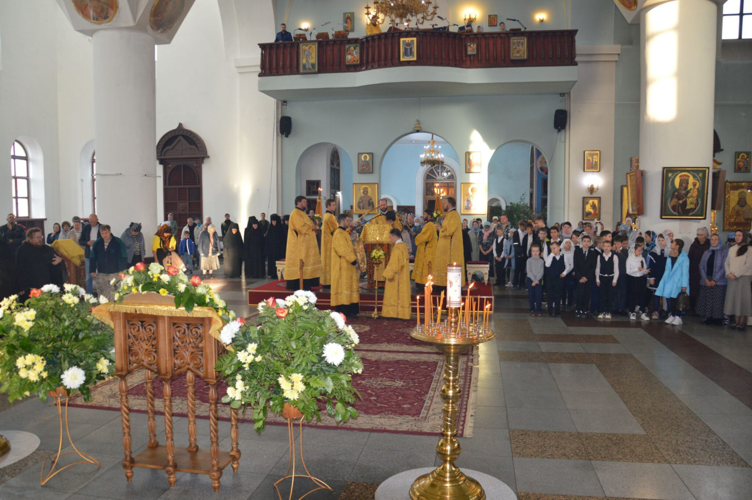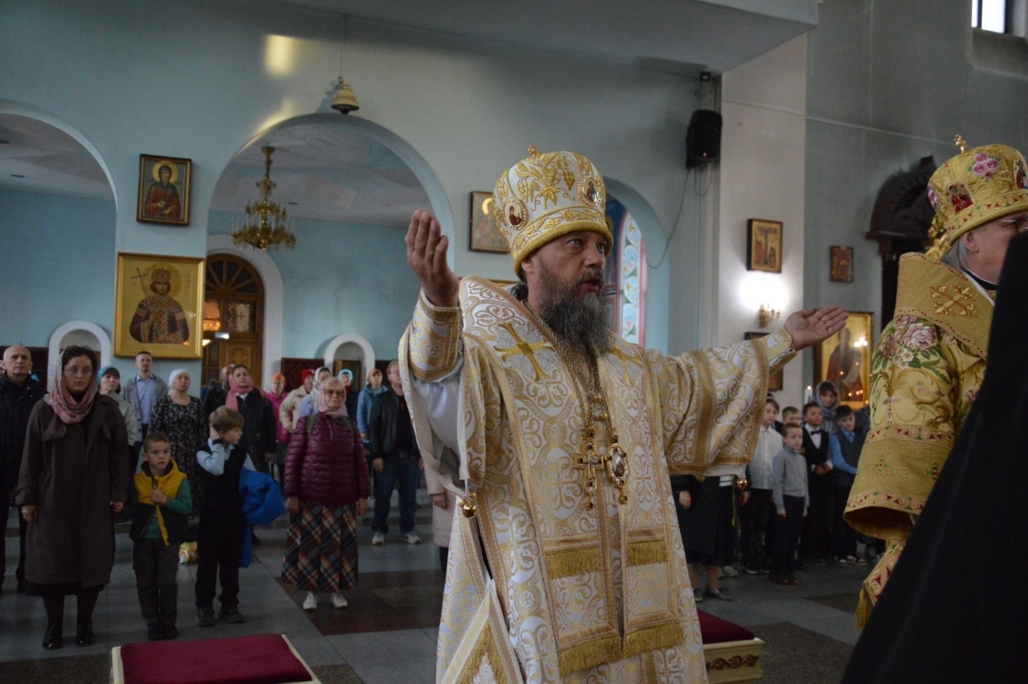 26 сентября 2024 года в Чите состоялись торжества, посвященные 20-летию освящения кафедрального собора Казанской иконы Божией Матери. В этот день Божественную литургию в кафедральном соборе совершили: митрополит Читинский и Петровск-Забайкальский Димитрий, архиепископ Подольский и Люберецкий Аксий, епископ Северобайкальский и Сосново-Озёрский Николай, епископ Нерчинский и Краснокаменский Макарий. Архипастырям сослужило духовенство Читинской, Подольской, Северобайкальской и Нерчинской епархий. За богослужением молились: воспитанники Забайкальской православной гимназии имени святителя Иннокентия, епископа Иркутского, многочисленные гости, прихожане храмов Забайкалья. Богослужебные песнопения исполнил хор Казанского кафедрального собора г. Читы. На Литургии по благословению Святейшего Патриарха Московского и всея Руси Кирилла на сугубой ектении были вознесены особые прошения и молитва о Святой Руси. Проповедь перед причастием произнес иерей Валерий Шаферов, клирик Казанского кафедрального собора г. Читы. По заамвонной молитве архипастыри совершили славление перед Казанской иконой Пресвятой Богородицы. Затем было возглашено многолетие Святейшему Патриарху Московскому и всея Руси Кириллу, архипастырям совершившим Божественную литургию, Богохранимей стране нашей, властем и воинству Российскому, строителям и благоукрасителям святаго храма сего. По окончании Литургии митрополит Димитрий обратился к прибывшим в Читу на торжества архипастырям и поздравил всех со знаменательной датой, отметив важность Казанского собора как духовного центра региона. Владыка подчеркнул, что собор не только место молитвы, но и символ единства и веры для всех православных Забайкалья. Глава Забайкальской митрополии вручил памятные медали «130-лет учреждения Забайкальской епархии, 30-лет возрождения Читинской епархии, 10-лет образования Забайкальской митрополии» архиепископу Аксию, епископу Николаю, епископу Макарию. Также памятными медалями были награждены клирики Читинской и Нерчинской епархий. Памятный знак «130-лет учреждения Забайкальской епархии, 30-лет возрождения Читинской епархии, 10-лет образования Забайкальской митрополии» митрополит Димитрий вручил иерею Кириллу Трунову, клирику Подольской епархии. Владыка Димитрий на память о совместном богослужении преподнес архипастырям панагии. В ответных словах правящие архиереи Подольской, Северобайкальской и Нерчинской епархий поблагодарили митрополита Димитрия за теплый прием и преподнесли ему памятные подарки. Каждый из прибывших архипастырей тесно связан с Забайкальем. Архиепископ Аксий управлял Нерчинской епархией с 2017 по 2019 год, епископ Николай родился в Забайкалье, епископ Макарий в настоящее время является правящим архиереем Нерчинской епархии. По окончании торжественной части гостей пригласили на праздничный обед, который стал продолжением дня празднования и духовного общения. Привет, ©Нерчинская епархия