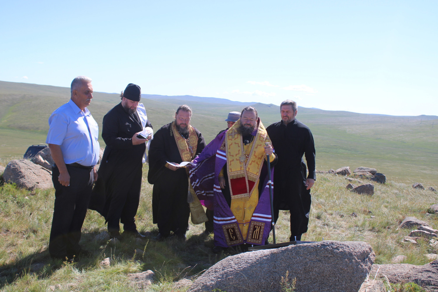 Архипастырь совершил чин освящения закладного камня в основании часовни на месте захоронения воинов умерших от ран в годы Великой Отечественной войны